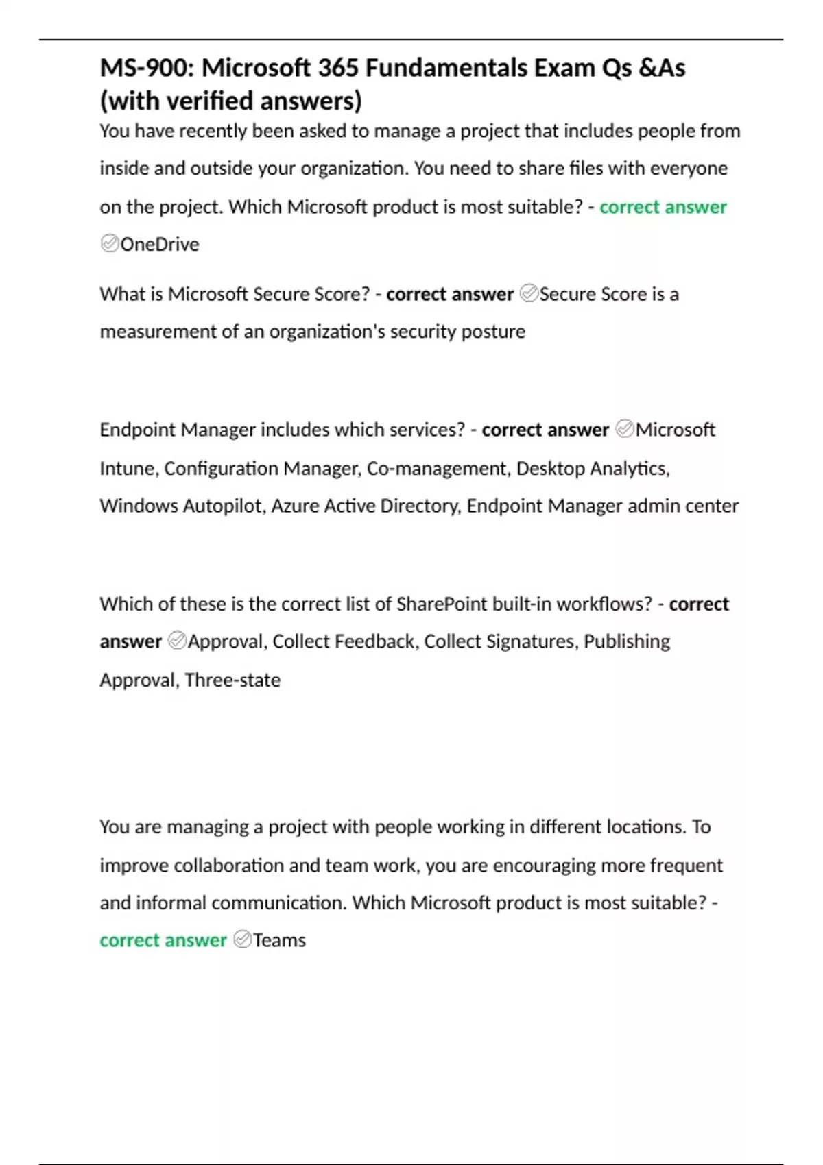MS-900: Microsoft 365 Fundamentals Exam Qs &As (with verified answers)