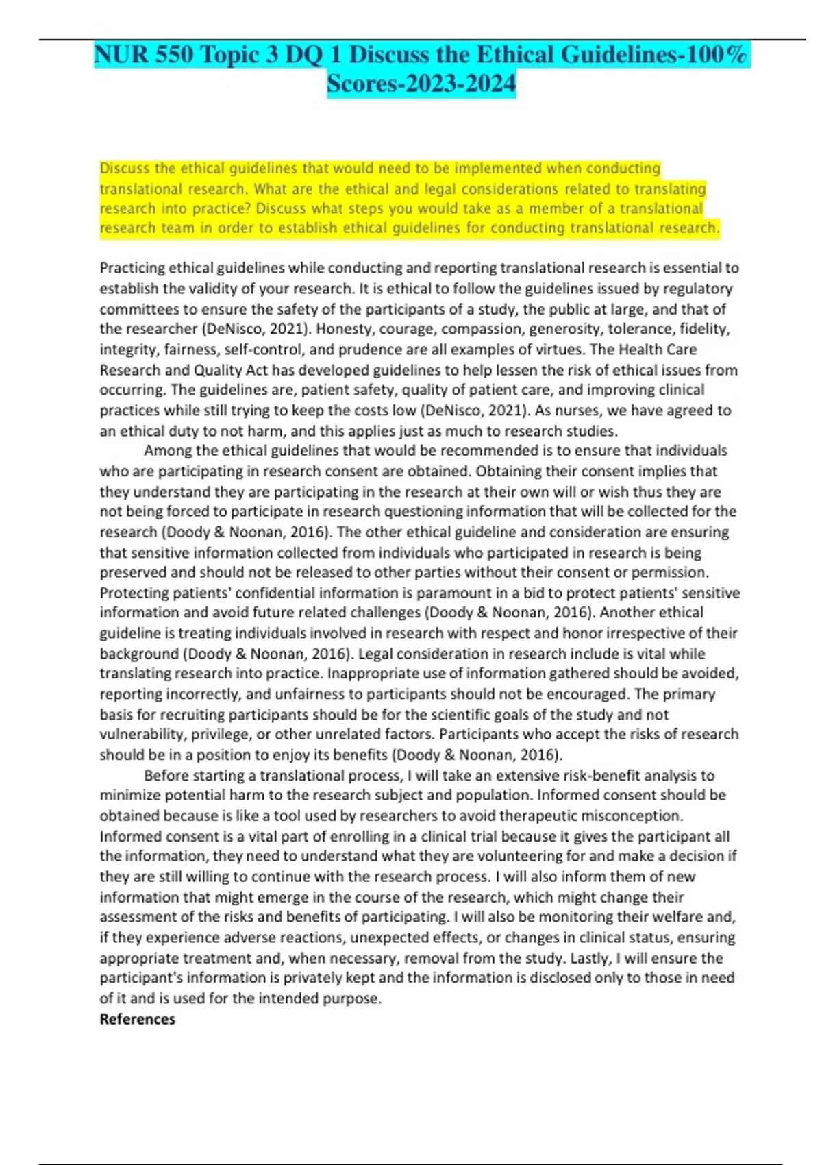 NUR 550 Topic 3 DQ 1 Discuss the Ethical Guidelines-100% Scores-