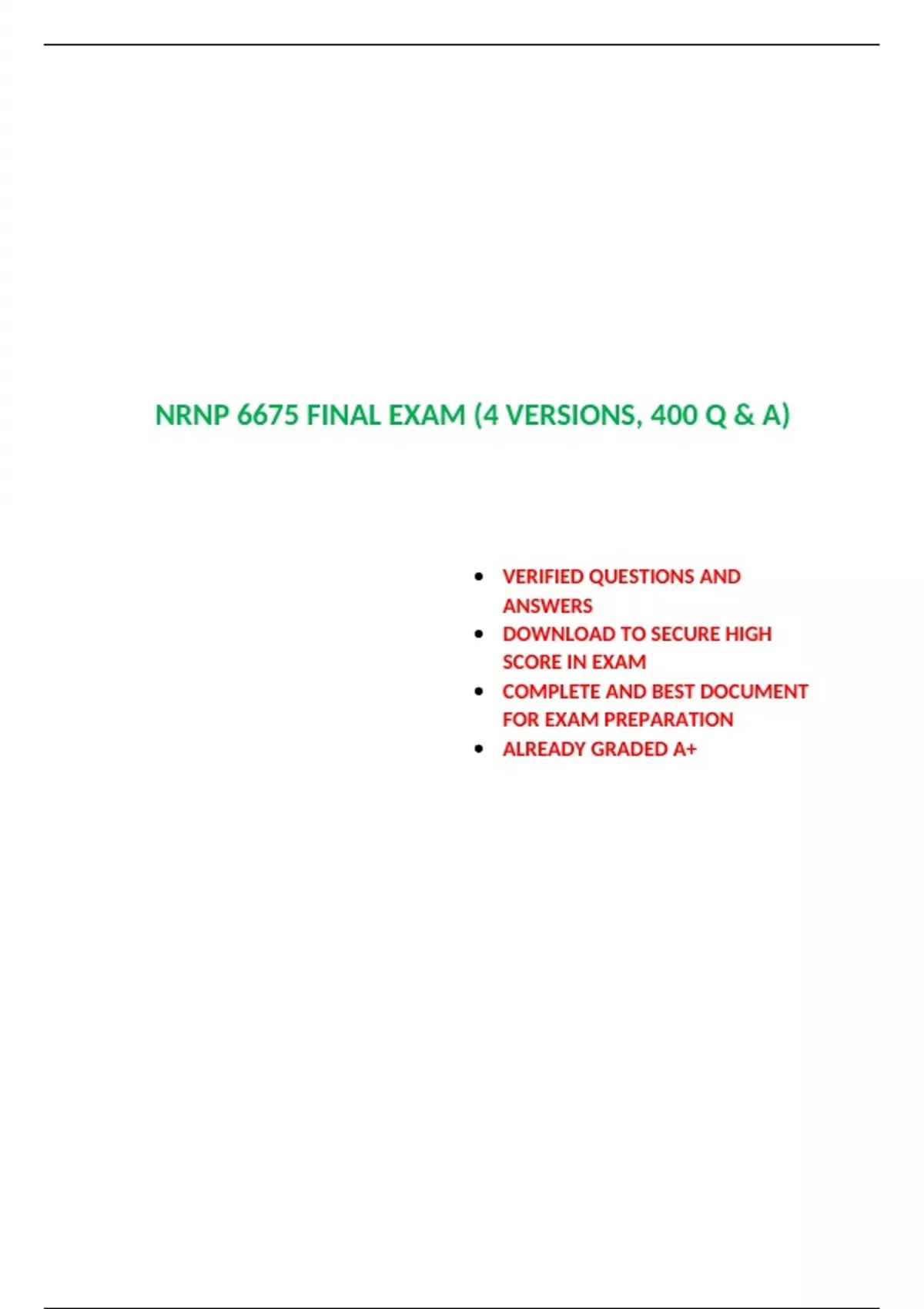 NRNP 6675 FINAL EXAM (4 VERSIONS, 400 Q & A)