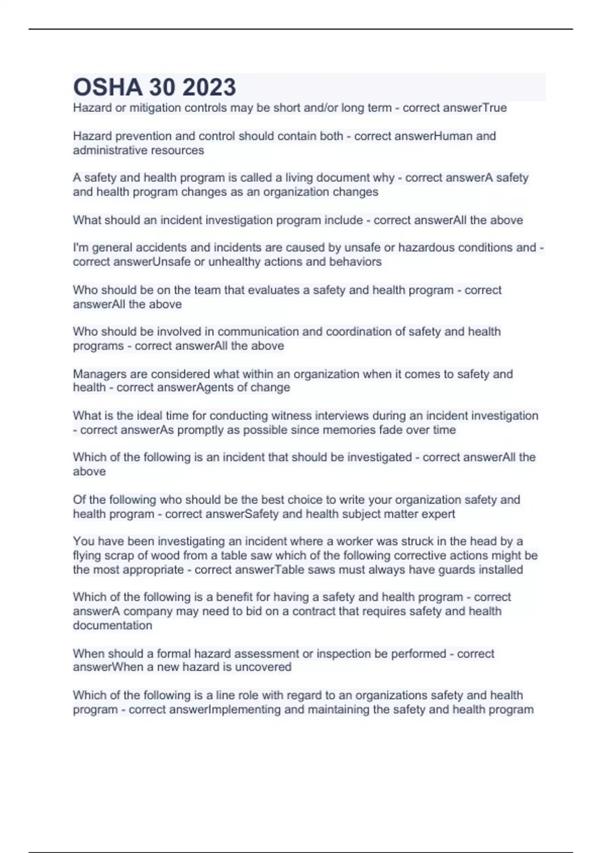 osha 30 2023 with complete solution