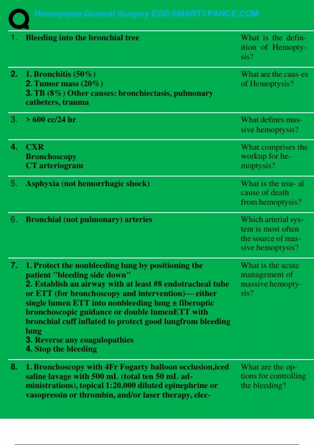 Hemoptysis General Surgery EOR SMARTYPANCE