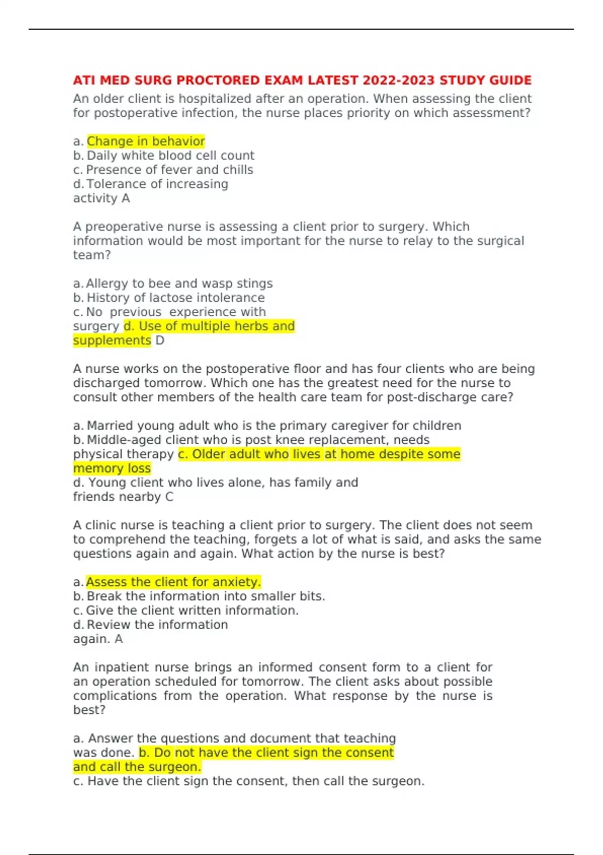 ATI MED SURG PROCTORED EXAM LATEST STUDY GUIDE,