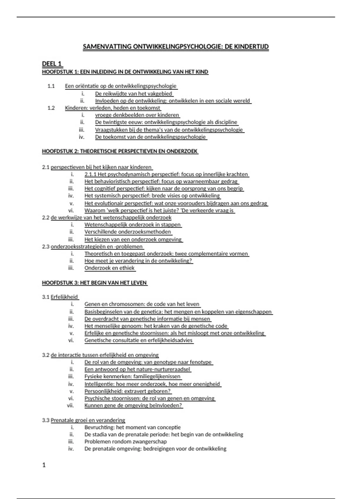 HOOFDSTUK 1: EEN INLEIDING IN DE ONTWIKKELING VAN HET KIND