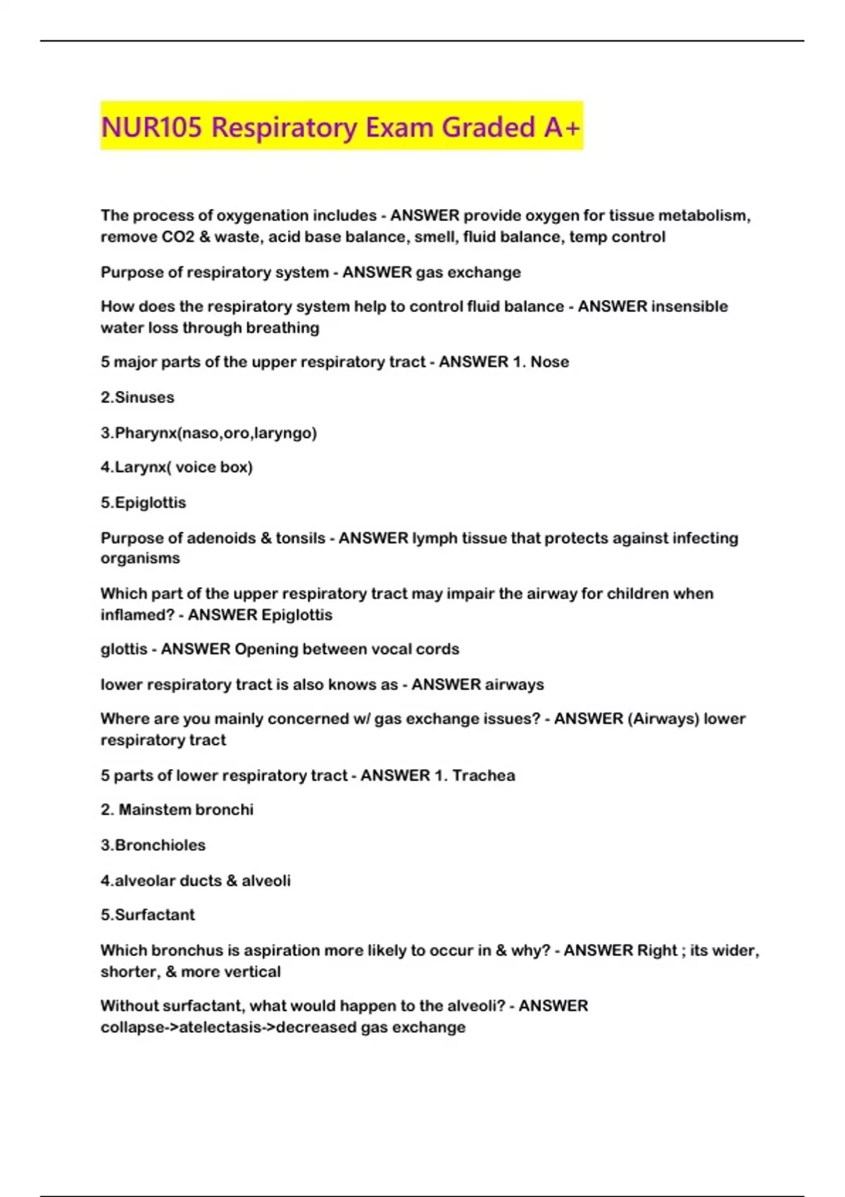 NUR105 Respiratory Exam Graded A+