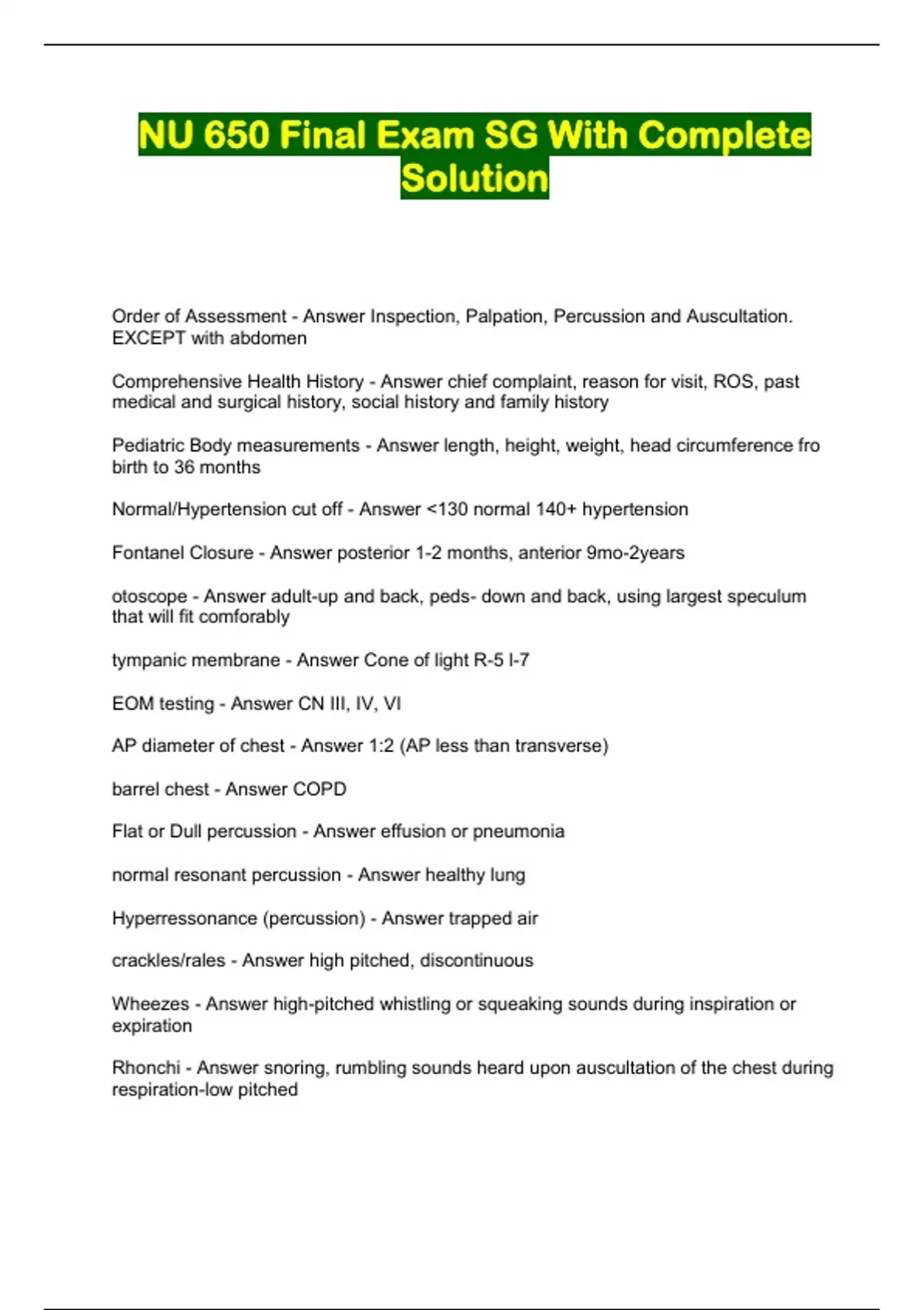 NU 650 Final Exam SG With Complete