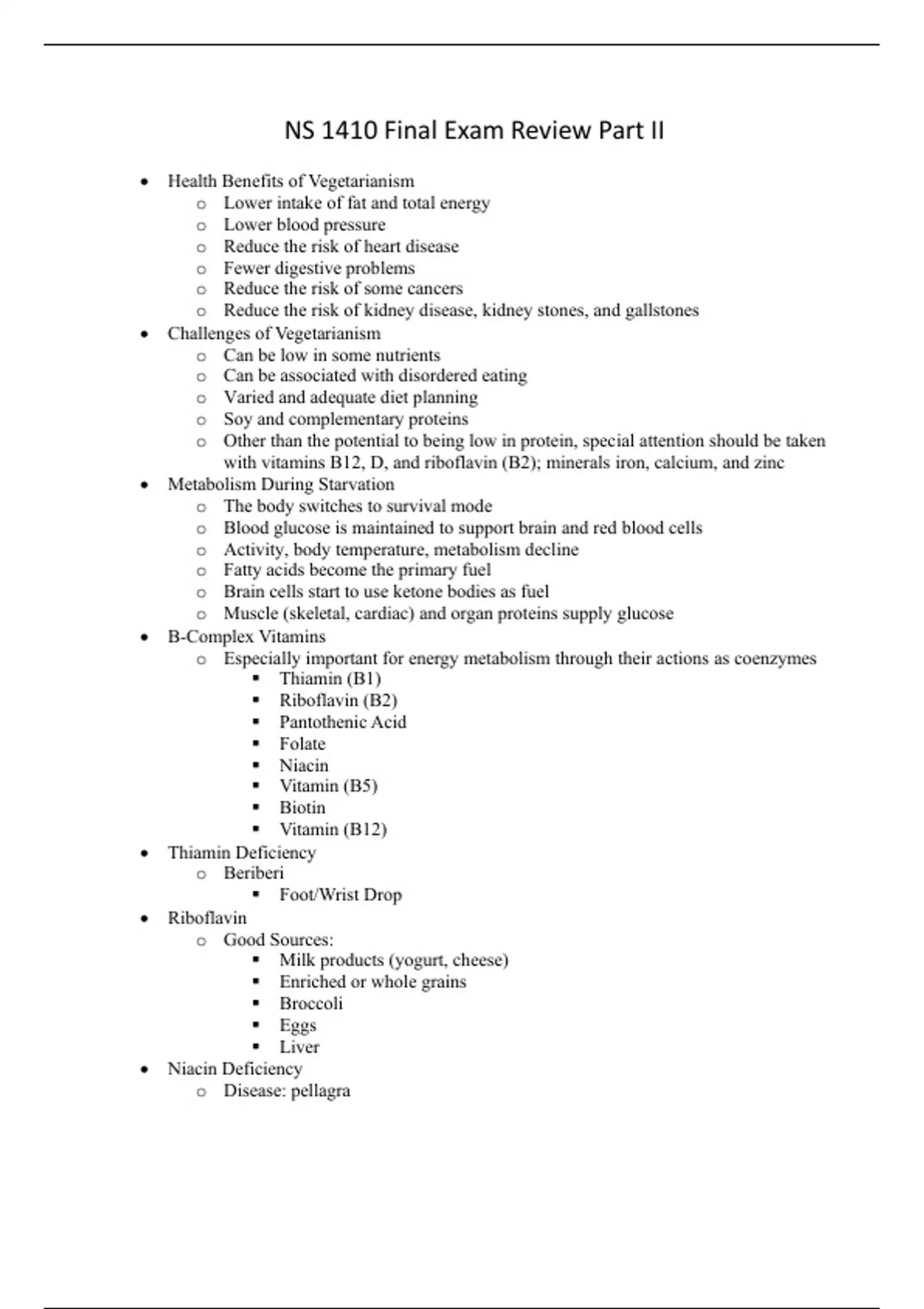Part II of a questions/answers review of Final Exam for Nutritional Sciences 1410.