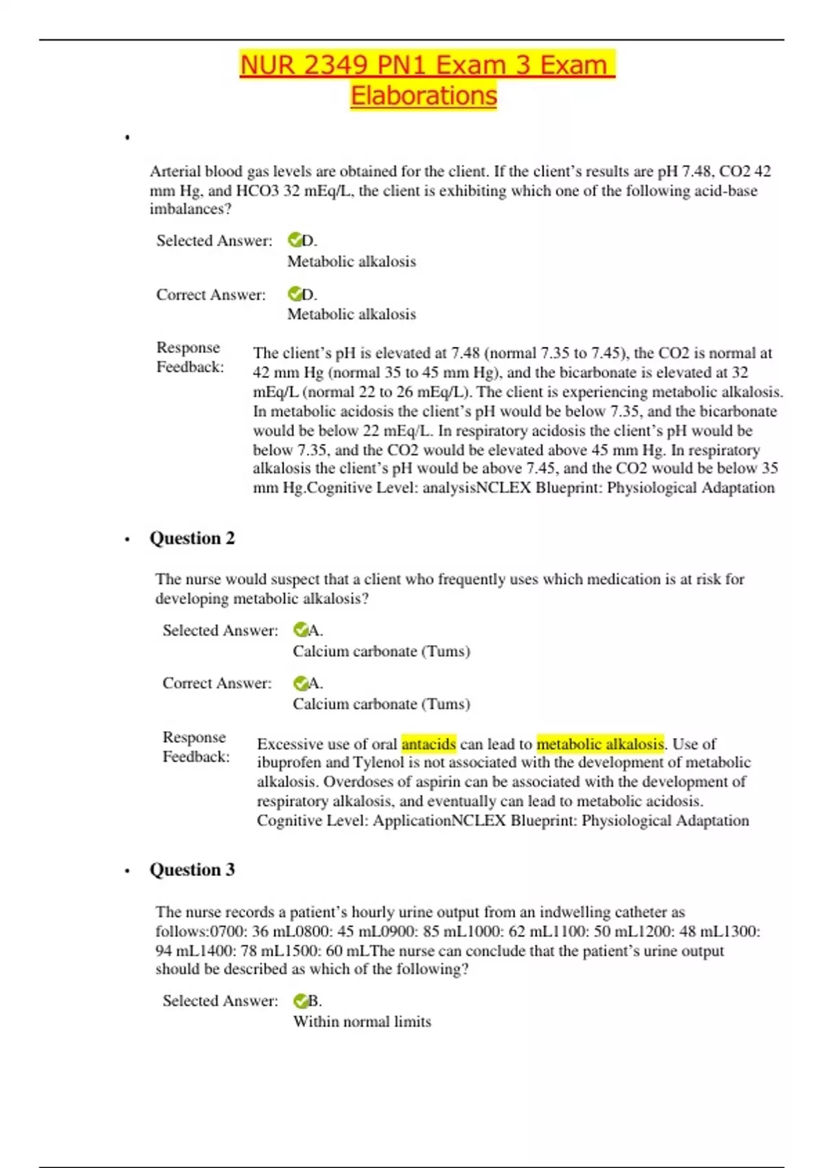 NUR 2349 PN1 Exam 3 Exam Elaborations