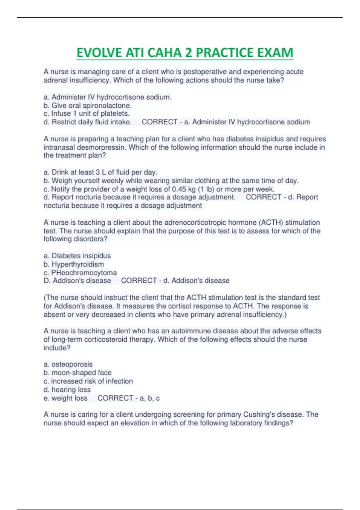 EVOLVE ATI CAHA 2 PRACTICE EXAM LATEST COMPLETE GUIDE RATED A.