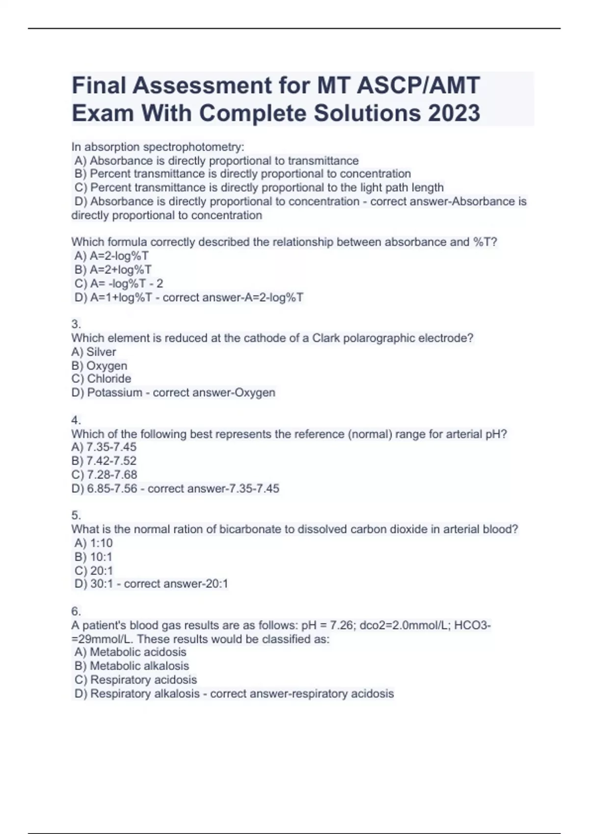 Final Assessment for MT ASCP/AMT Exam With Complete Solutions 2023