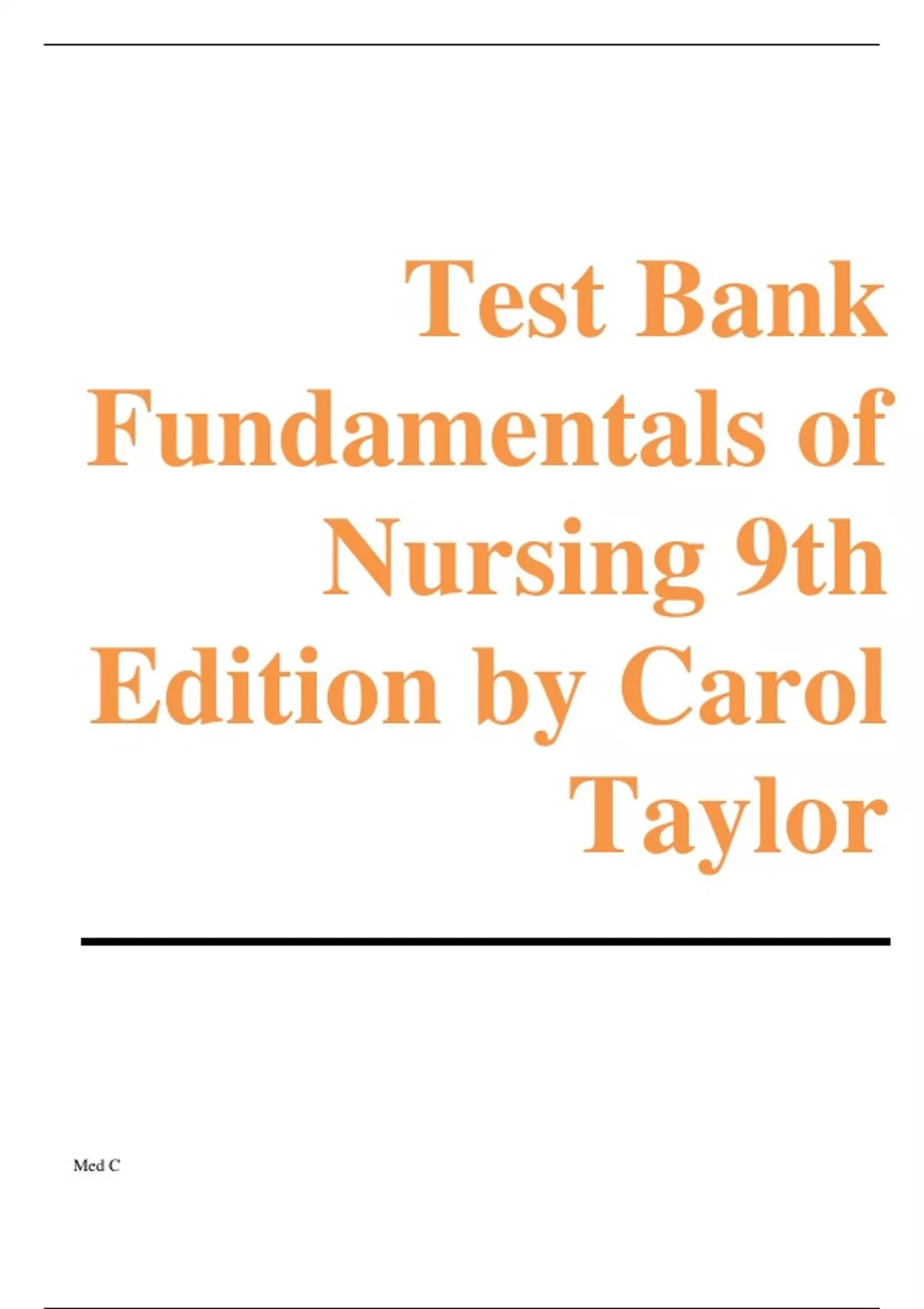 Test Bank Fundamentals of Nursing 9th Edition by Carol Taylor Pamela Lynn Jennifer Bartlett