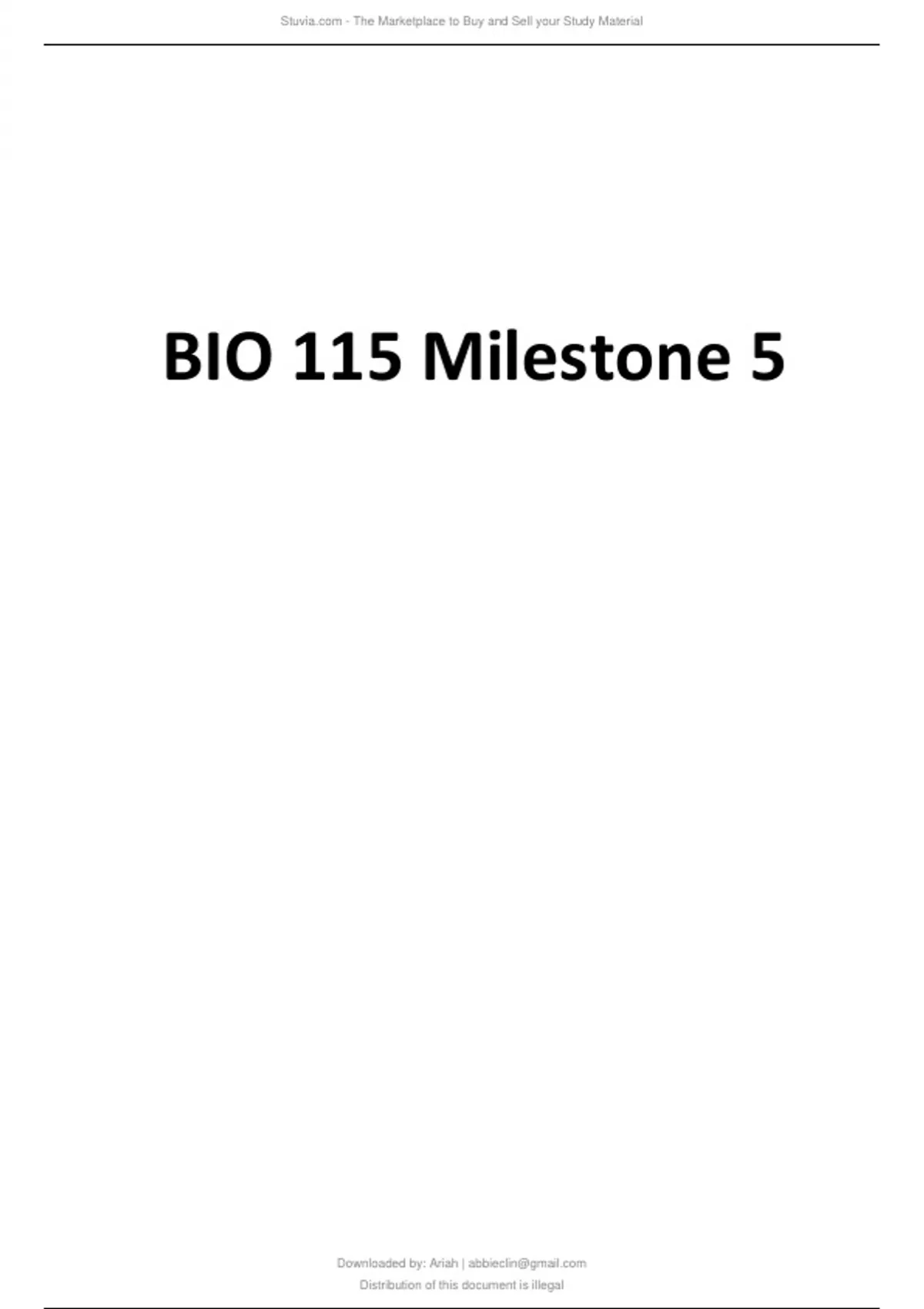 Exam of 12 pages for the course BIO 115 at BIO 115 (BIO 115 Milestone 5)