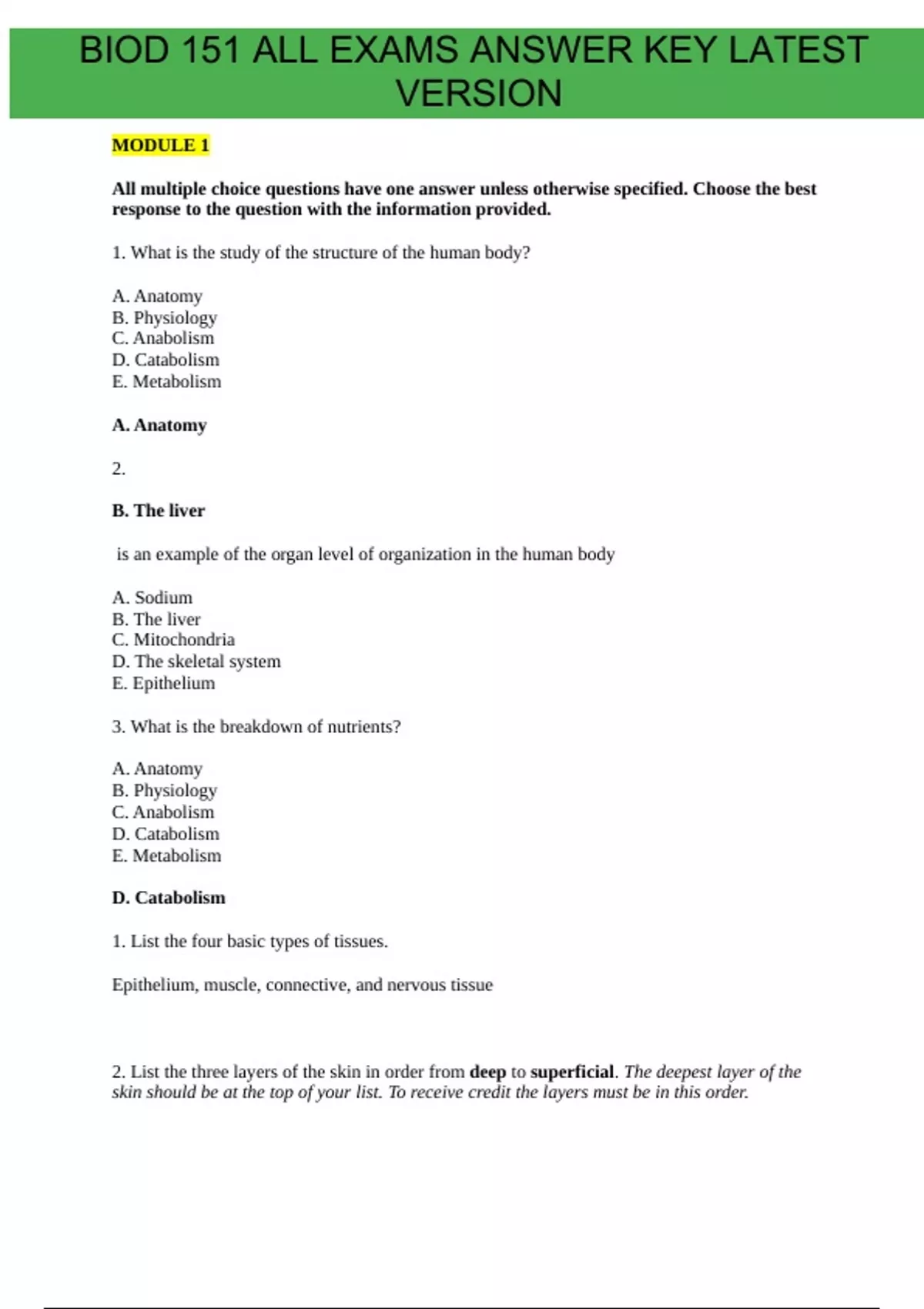 BIOD 151 ALL EXAMS ANSWER KEY LATEST VERSION