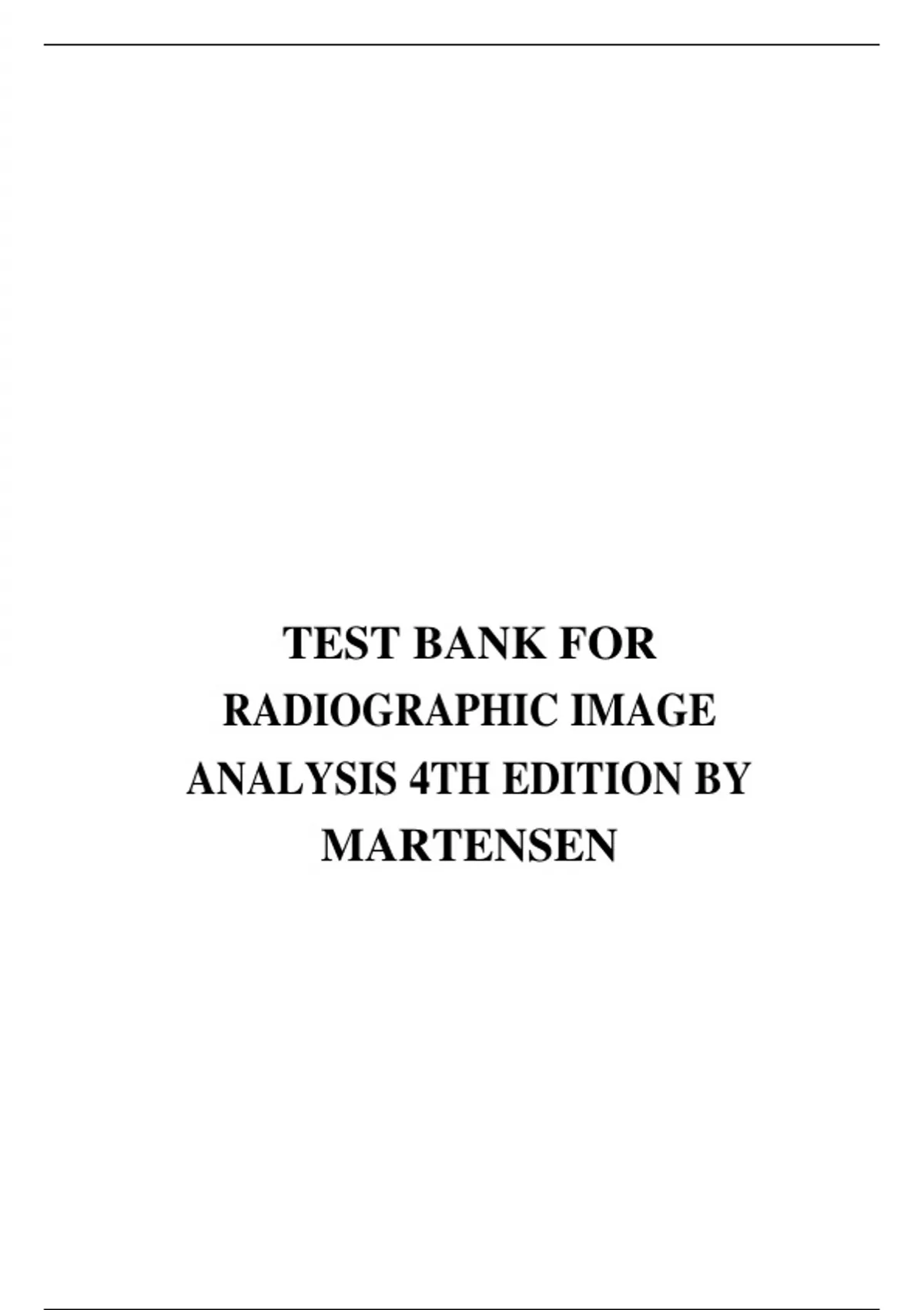 TEST BANK FOR RADIOGRAPHIC IMAGE ANALYSIS 4TH EDITION BY MARTENSEN