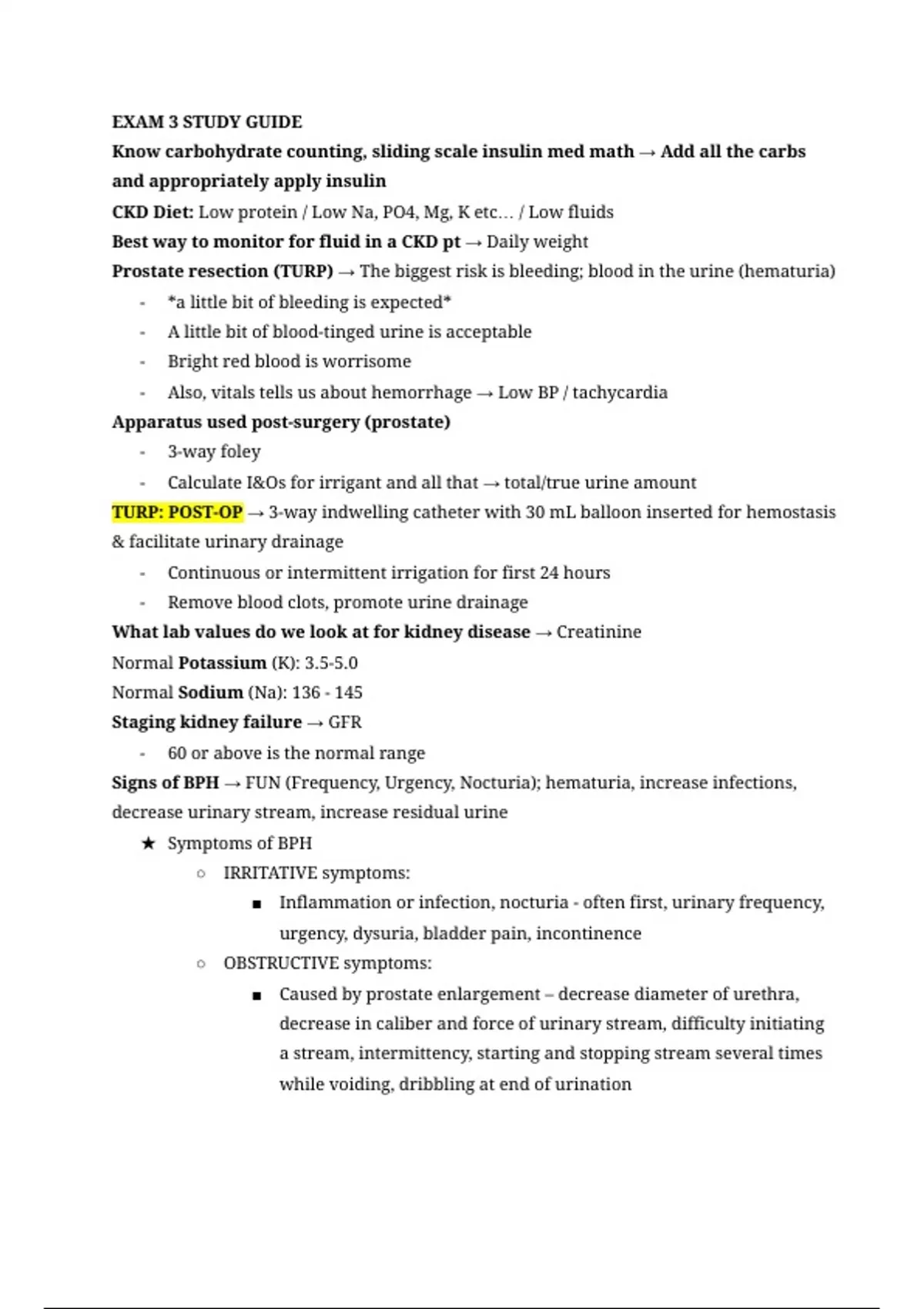 Exam 3 for med surg study guide. Overview of key points and summary of lectures. NUR 304