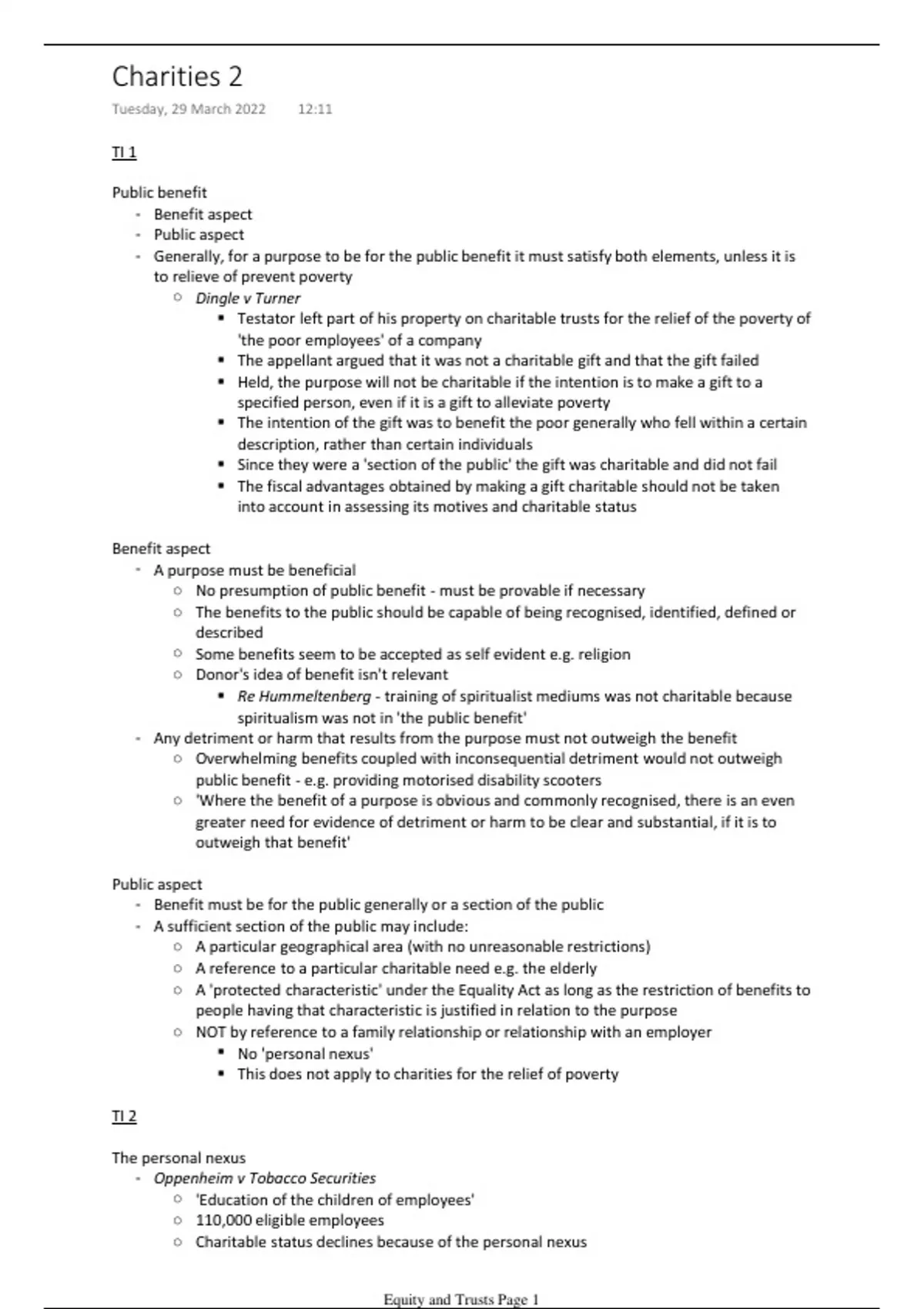 - Generally, for a purpose to be for the public benefit it must satisfy both elements, unless it is
