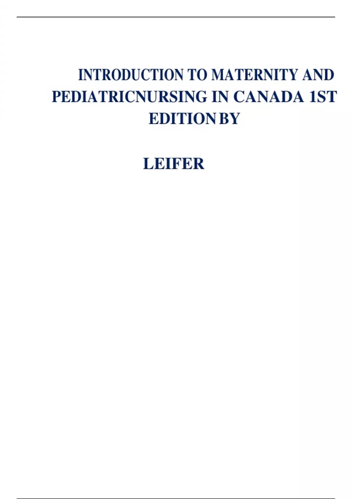 , TEST BANK FOR LEIFER’S INTRODUCTION TO MATERNITY AND PEDIATRIC NURSING IN