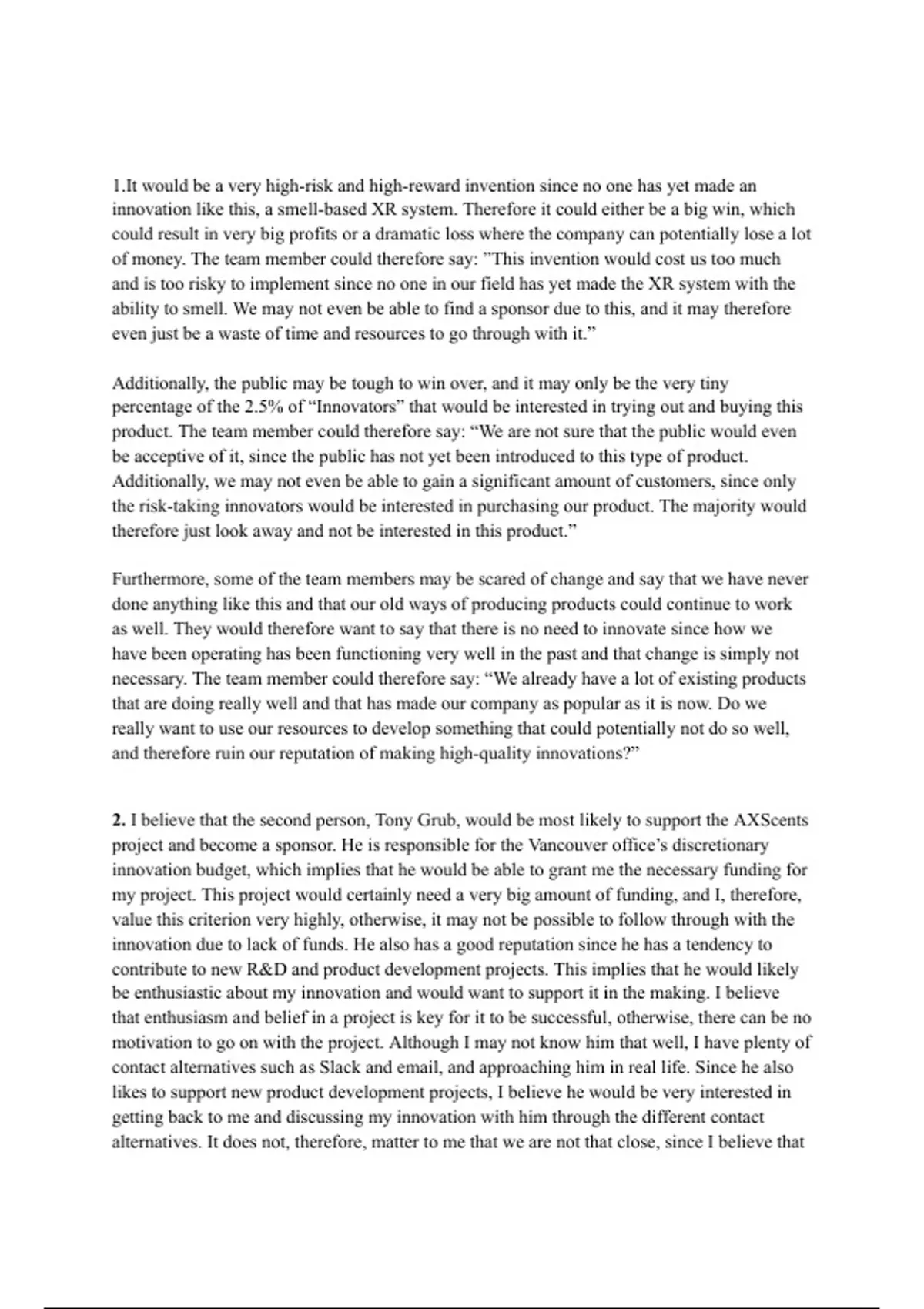 This document answers the questions in a case study and has arguments about what kind of innovation to pursue and why. The answers are linked to the course content andto the contents of the powerpoints and lectures.