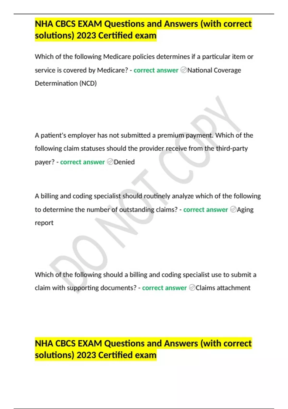 NHA CBCS EXAM Questions and Answers (with correct solutions) 2023 Certified exam