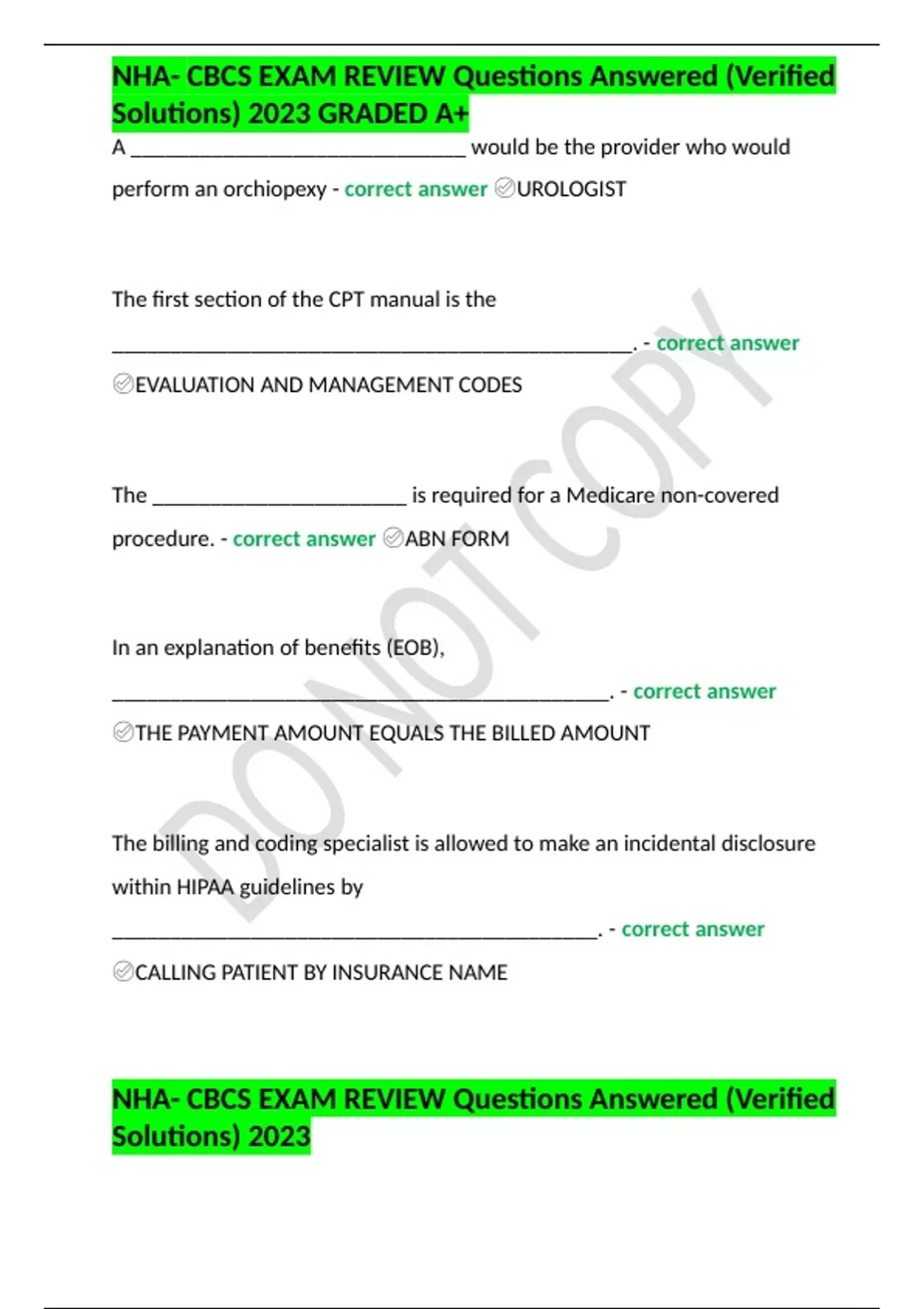 NHA- CBCS EXAM REVIEW Questions Answered (Verified Solutions) 2023