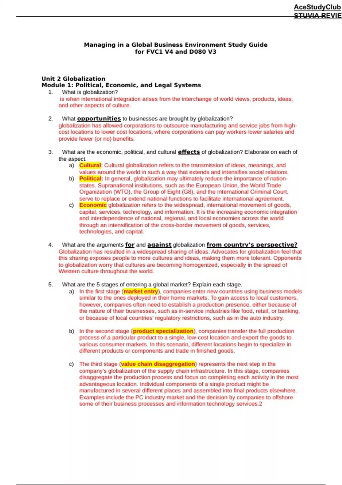 managing in a global business environment study guide for fvc1 v4 and d080 v3