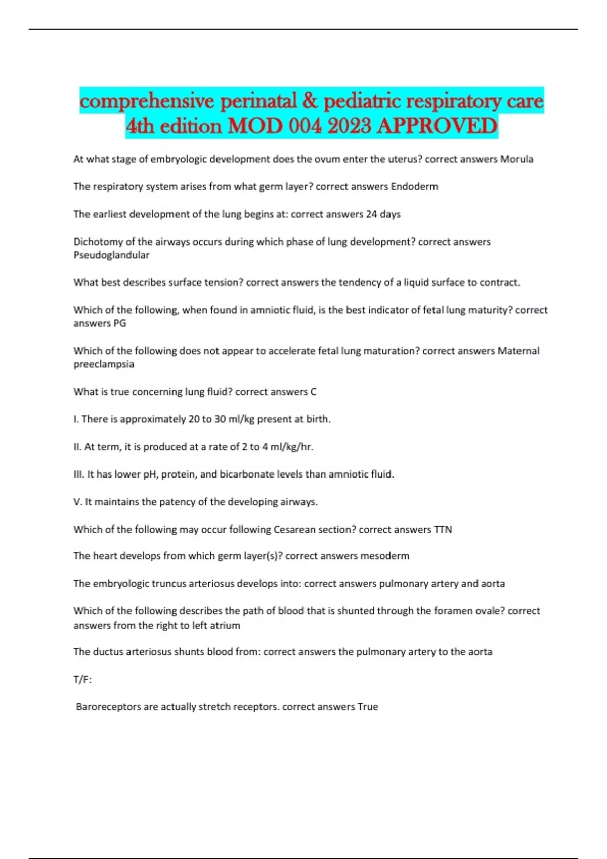 What is true concerning lung fluid? correct answers C
