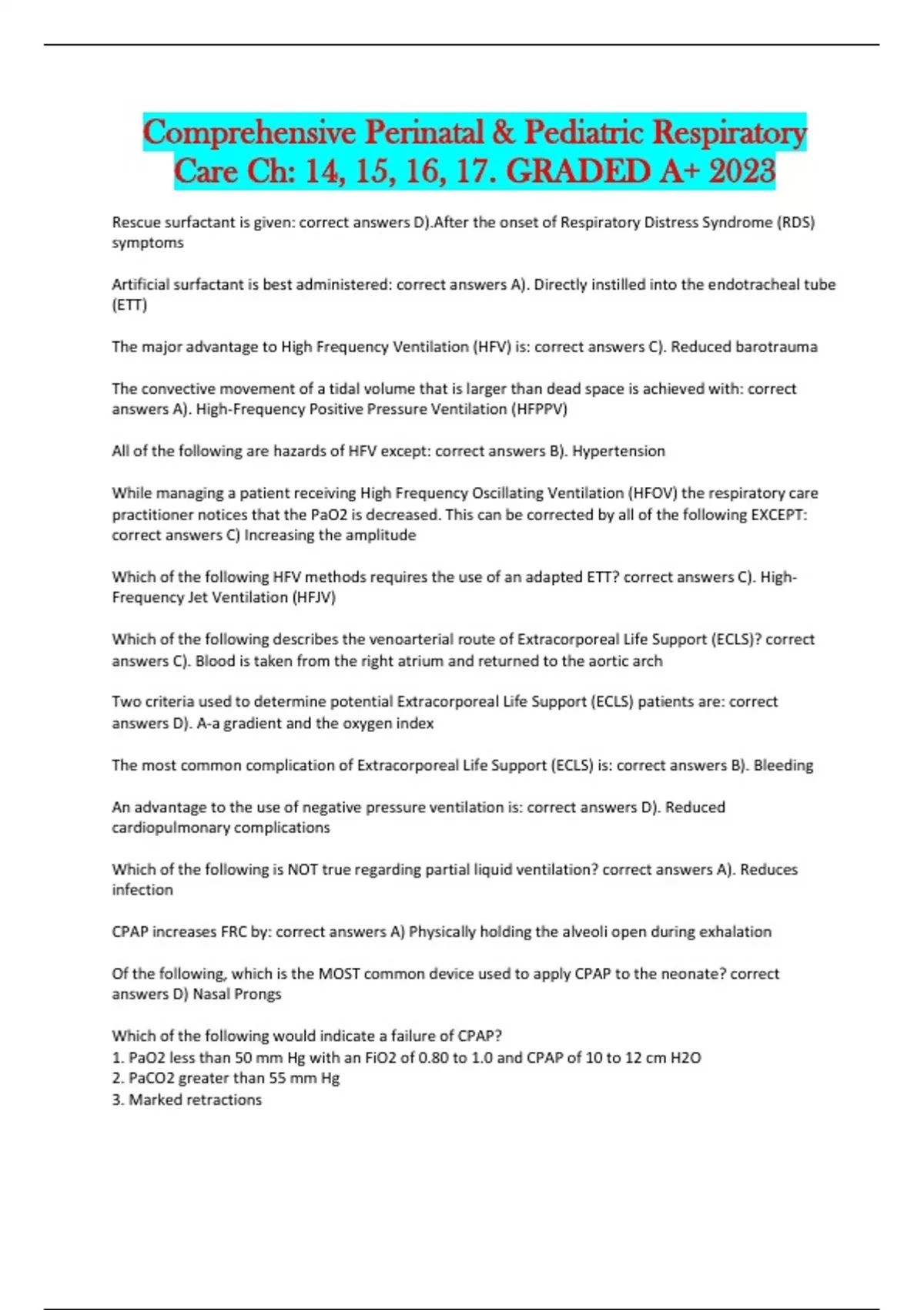 Rescue surfactant is given: correct answers D).After the onset of Respiratory Distress Syndrome (RDS)