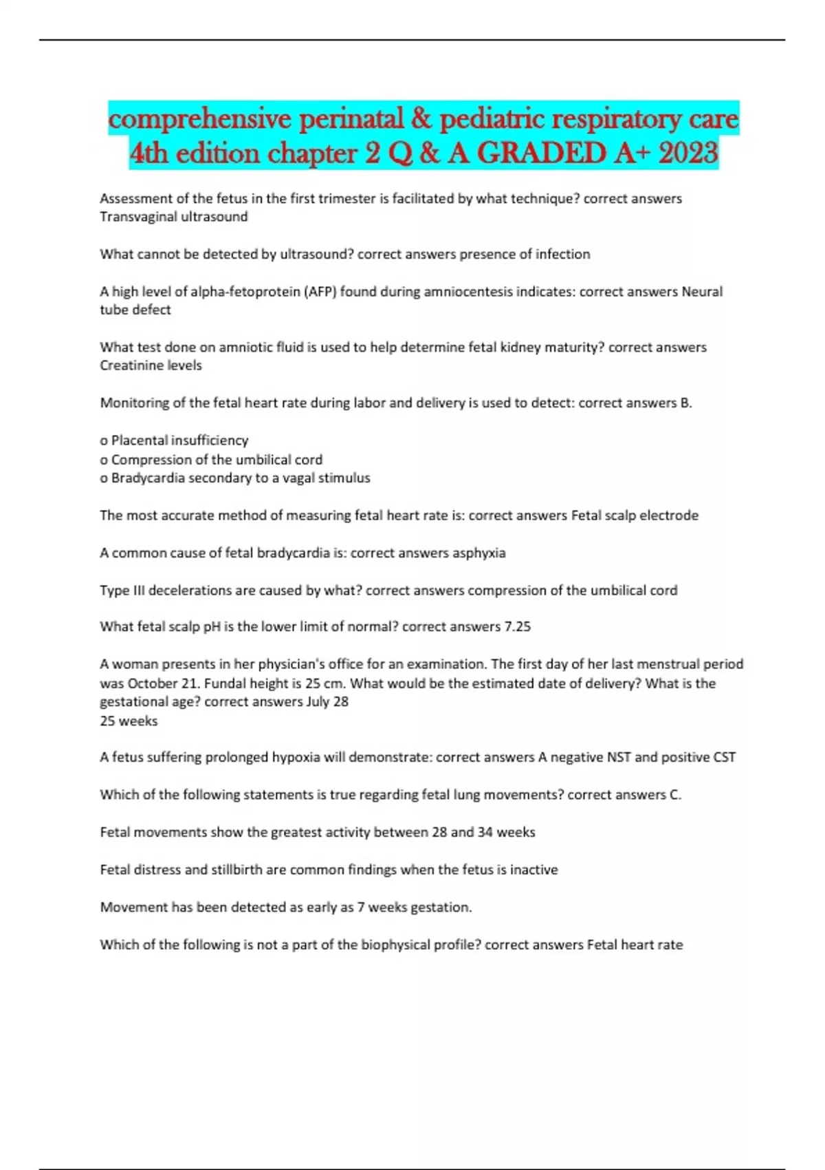 comprehensive perinatal & pediatric respiratory care 4th edition chapter 2 Q & A GRADED A+ 2023