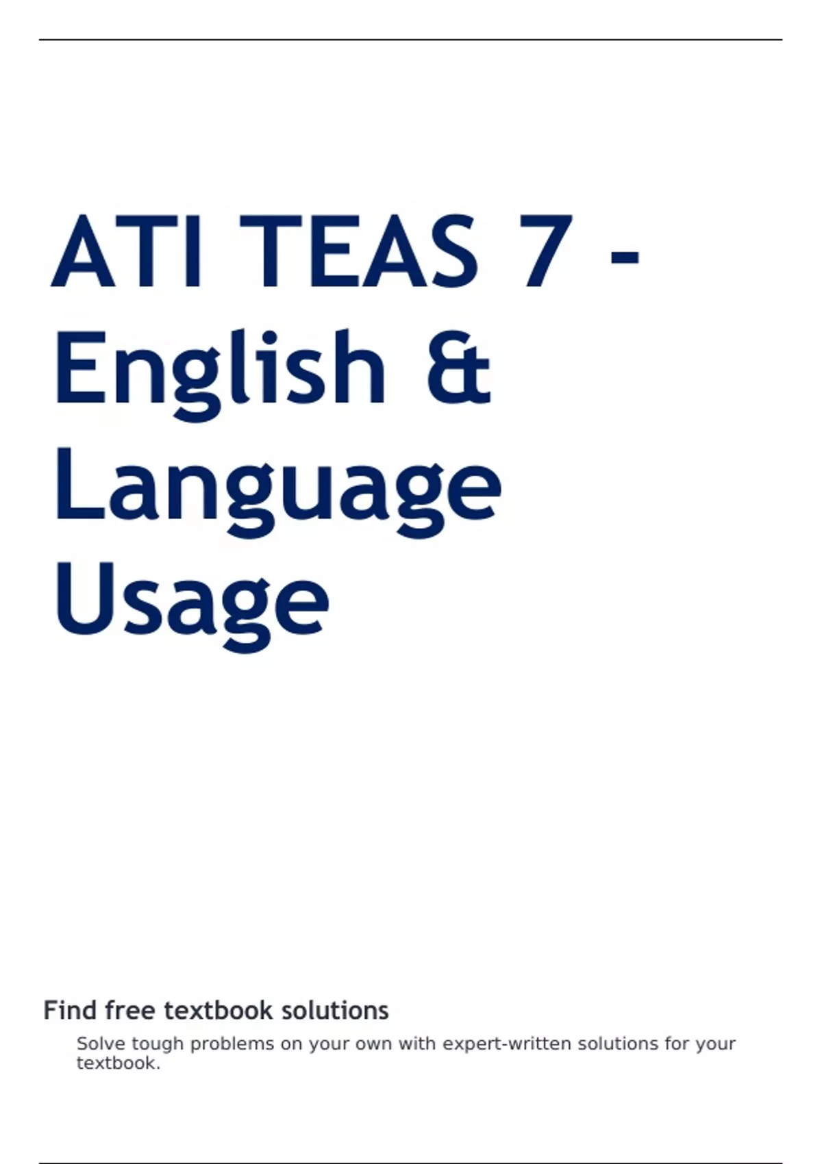 ATI TEAS 7 - English & Language Usage ; Find free textbook solutions Solve tough problems on your own with expert-written solutions for your textbook