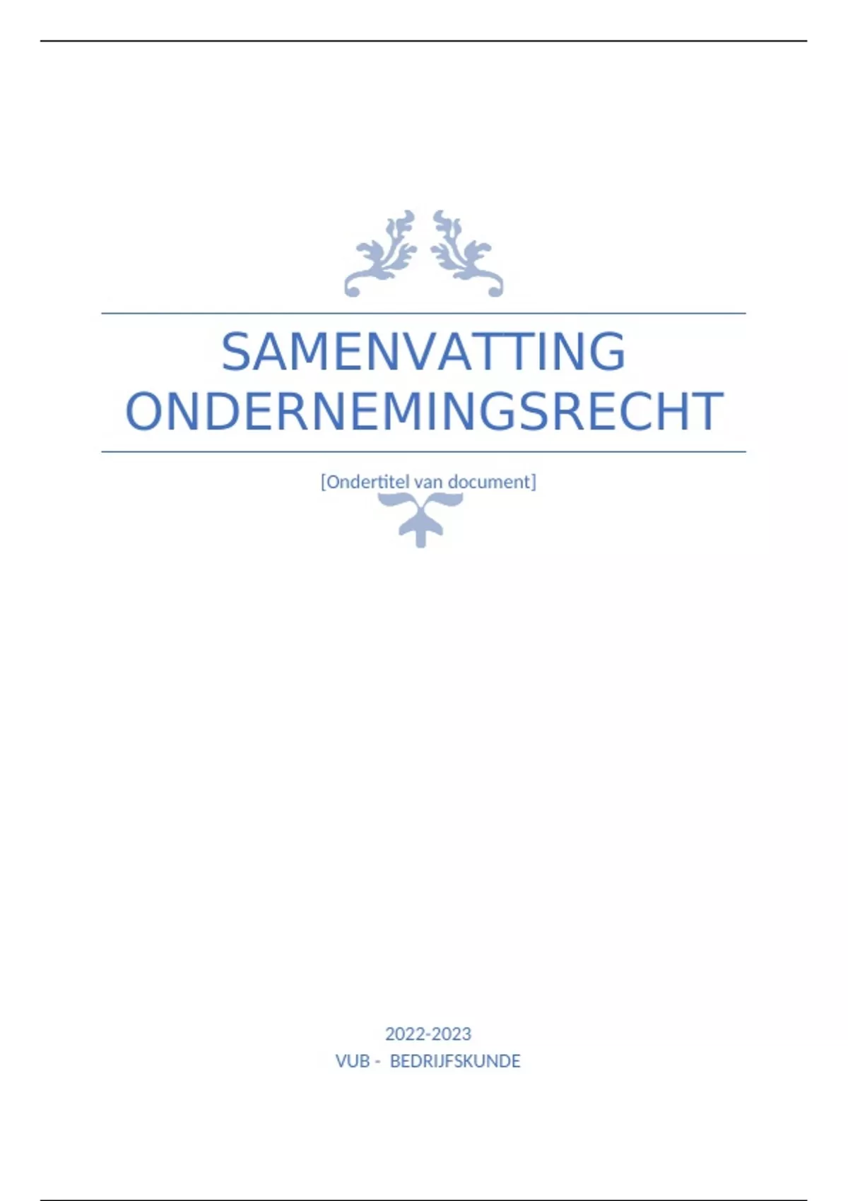 Deze samenvatting behelst al de te kennen leerstof voor het vak ondernemingsrecht. De cursus en college voorbeelden zijn samengevat in 3 documenten: inleiding tot het recht, inleiding tot het ondernemingsrecht en inleiding tot vennootschapsrecht
