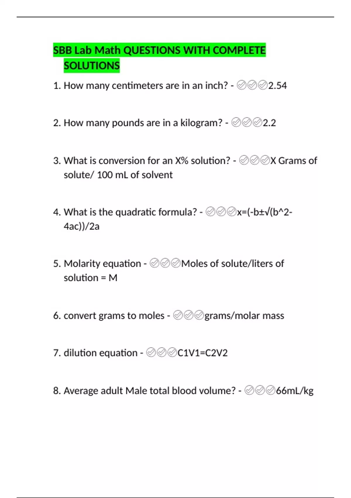 SBB Lab Math QUESTIONS WITH COMPLETE SOLUTIONS