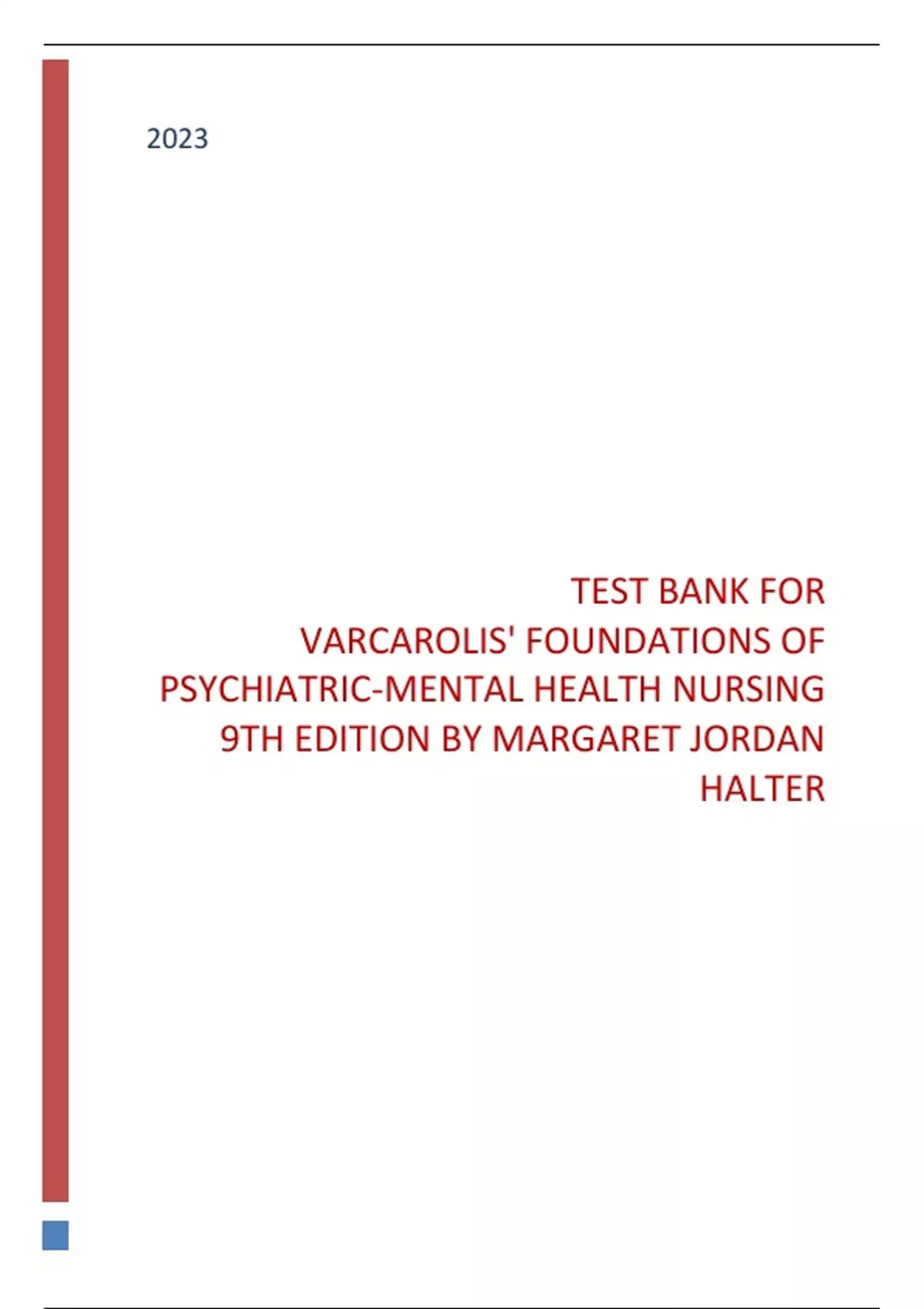 TEST BANK FOR VARCAROLIS' FOUNDATIONS OF PSYCHIATRIC-MENTAL HEALTH NURSING 9TH EDITION BY MARGARET JORDAN HALTER