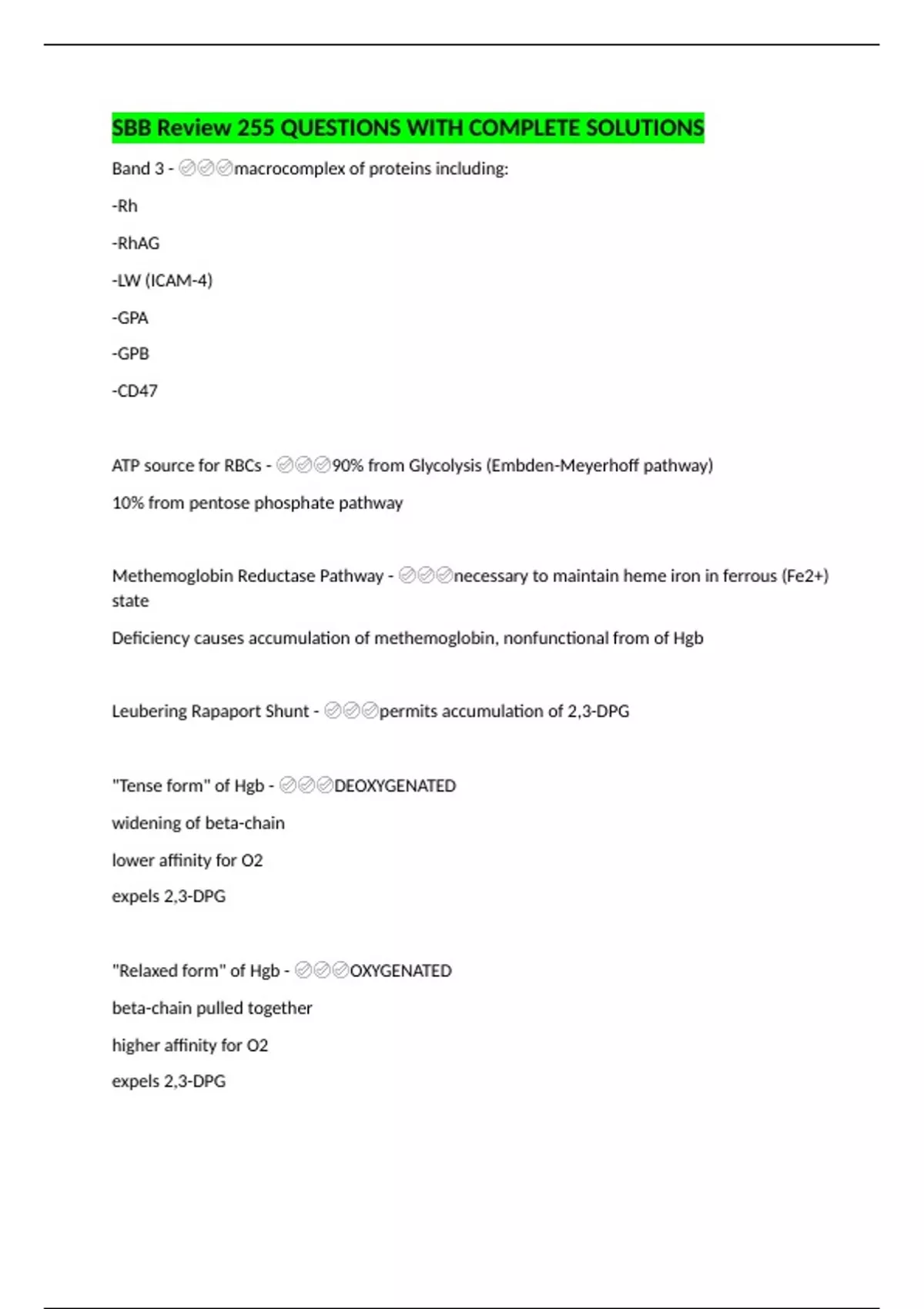 SBB Review 255 QUESTIONS WITH COMPLETE SOLUTIONS