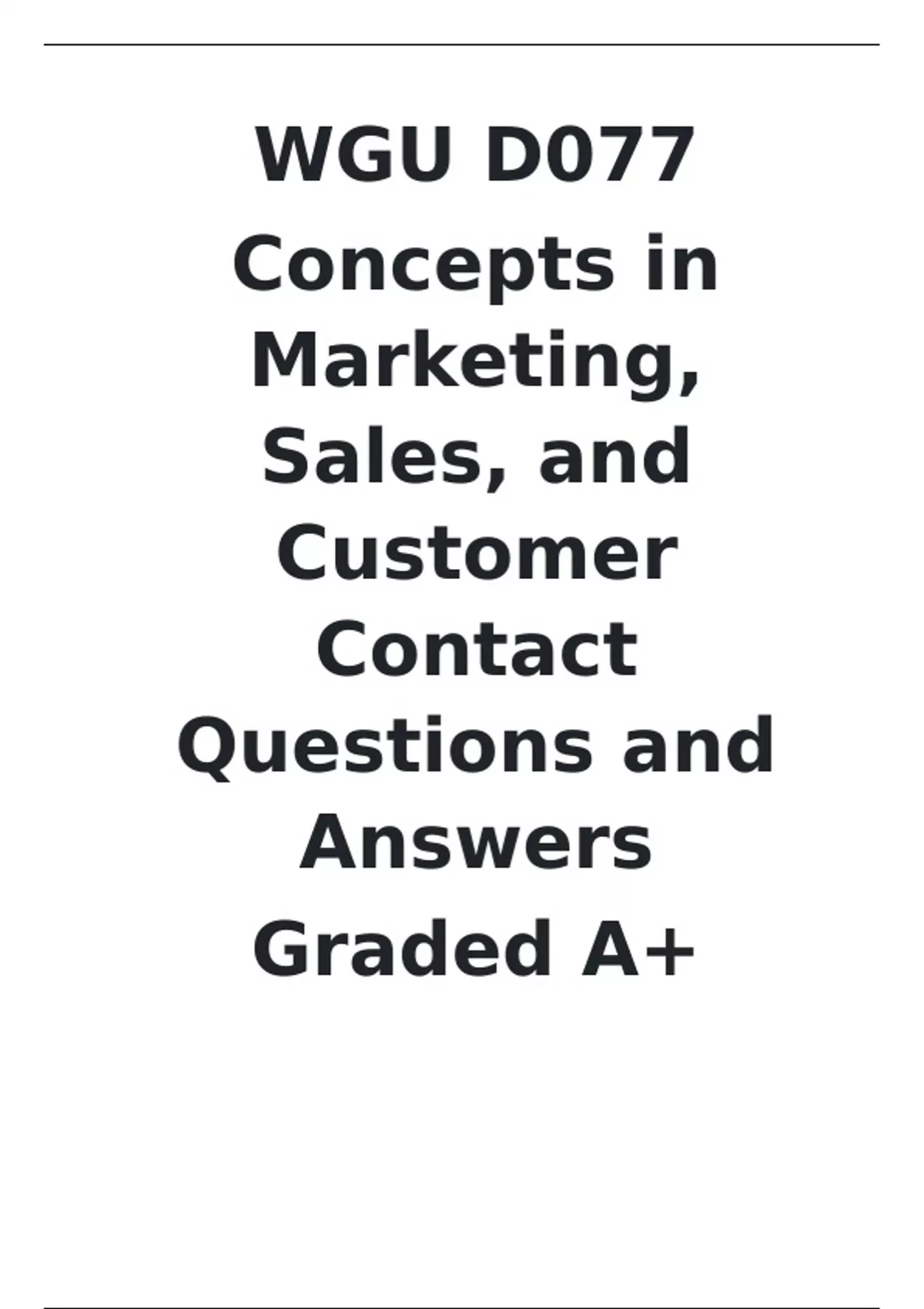 WGU D077 Concepts in Marketing, Sales, and Customer Contact Questions and Answers Graded A+