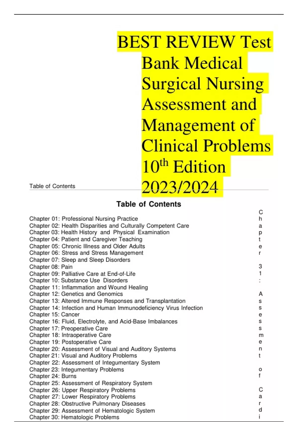 BEST REVIEW Test Bank Medical Surgical Nursing Assessment and Management of Clinical Problems 10th Edition 2023/2024