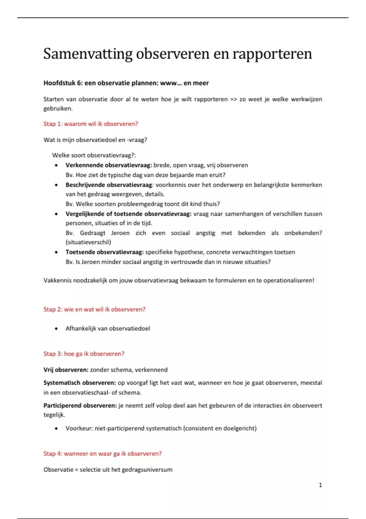 Starten van observatie door al te weten hoe je wilt rapporteren => zo weet je welke werkwijzen