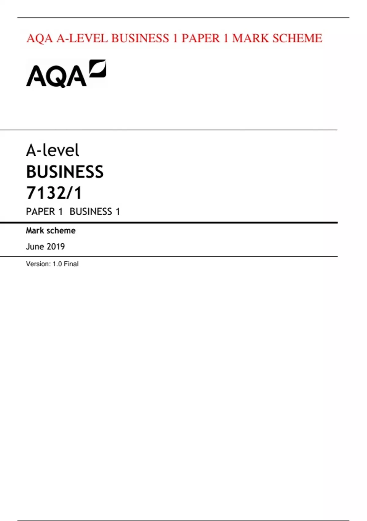 AQA A-LEVEL BUSINESS 1 PAPER 1 MARK SCHEME