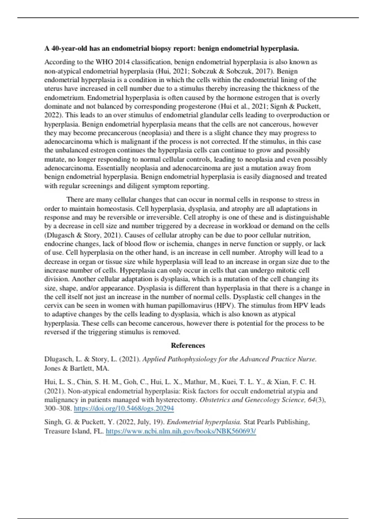 MSN 570 WEEK 2 DISCUSSION :benign endometrial hyperplasia.