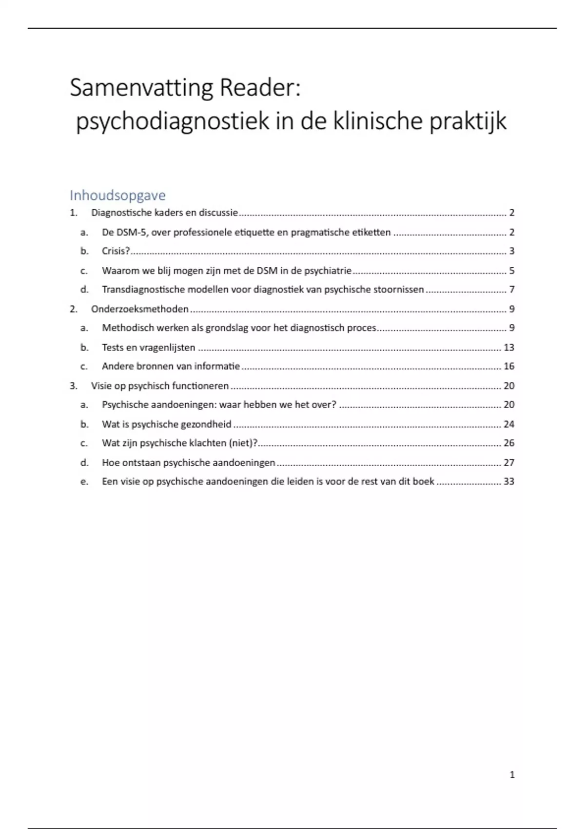 Dit is een samenvatting van de reader voor het gesloten deelexamen psychodiagnostiek in de klinische praktijk. Alleen de delen die gekend moesten zijn voor het examen in 2023 zijn hierin te vinden.