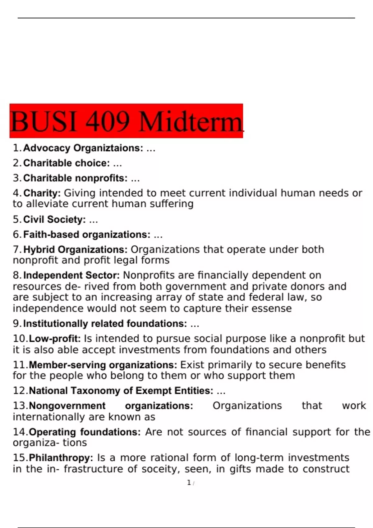 Exam of 5 pages for the course BUSI 409- Nonprofit Management Worth at BUSI 409- Nonprofit Management Worth (BUSI 409 Midterm)