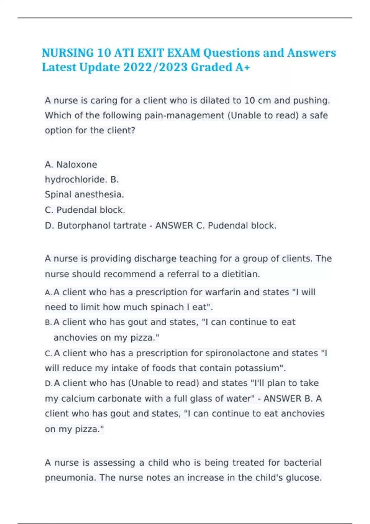 nursing 10 ati exit exam questions and answers latest update 20222023 graded a