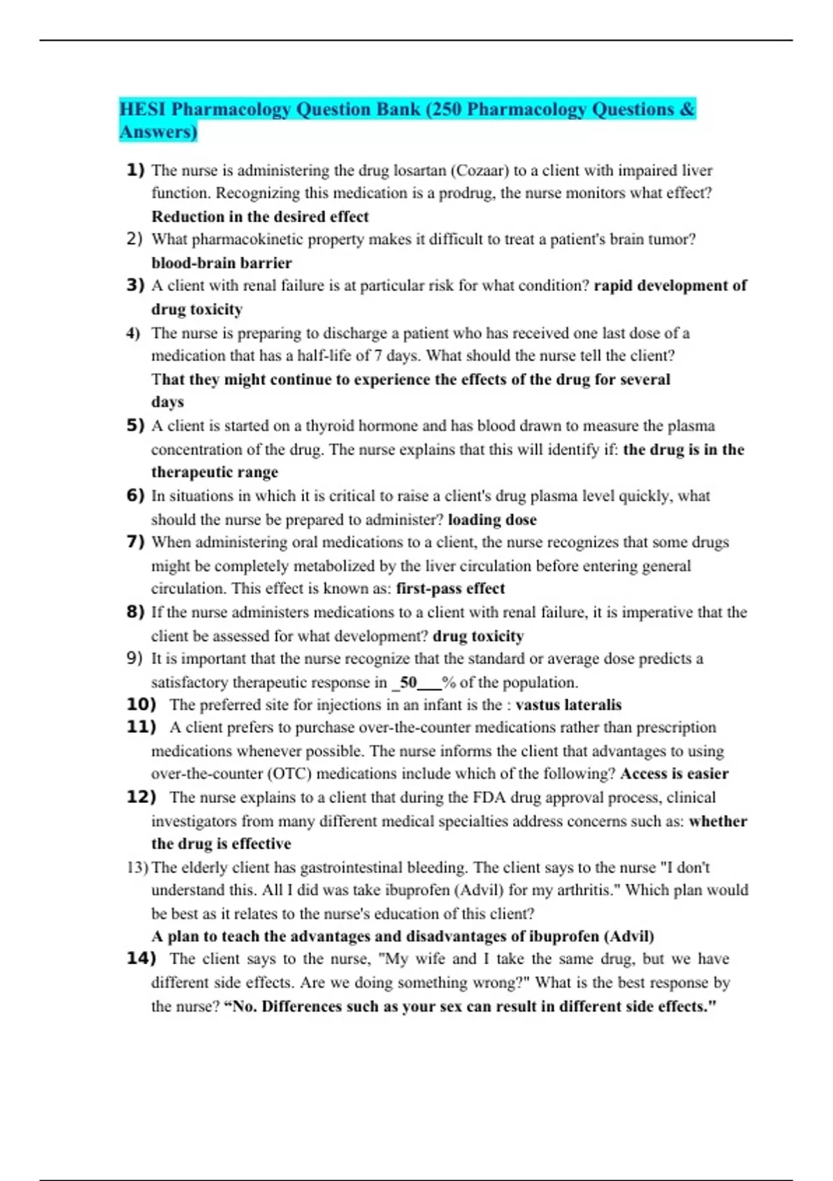 HESI Pharmacology Question Bank (250 Pharmacology Questions & Answers)