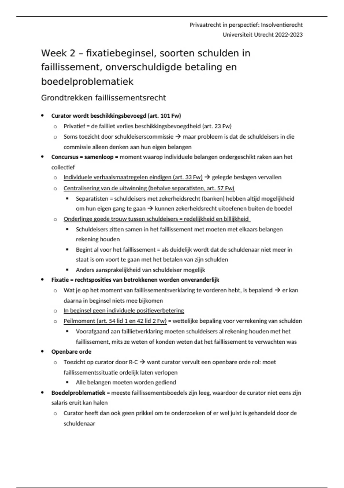 Week 2 – fixatiebeginsel, soorten schulden in