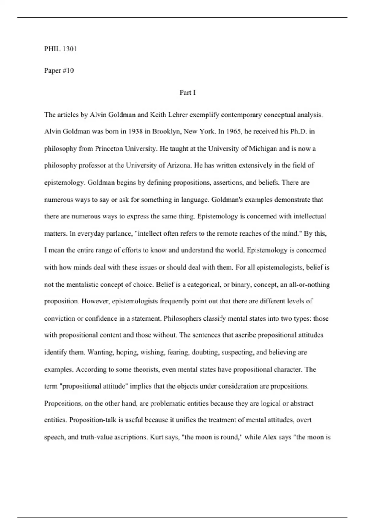 Summary and pov of Alvin Goldman