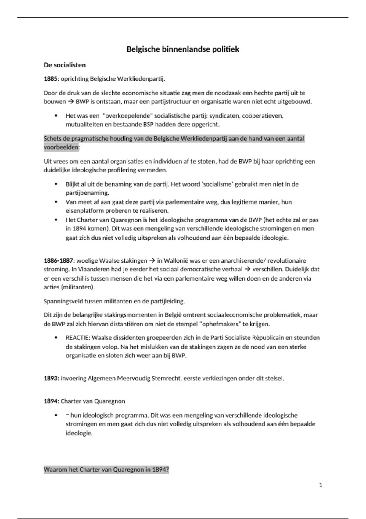 Schets de pragmatische houding van de Belgische Werkliedenpartij aan de hand van een aantal
