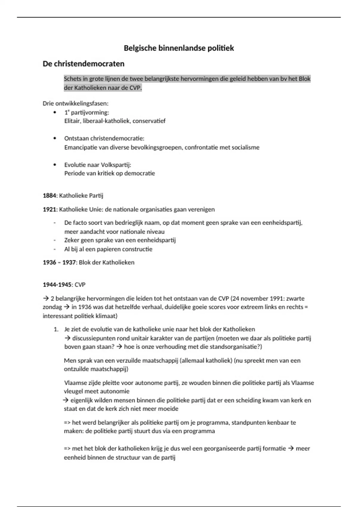Samenvatting christendemocraten - Belgische Binnenlandse Politiek (B000520A)
