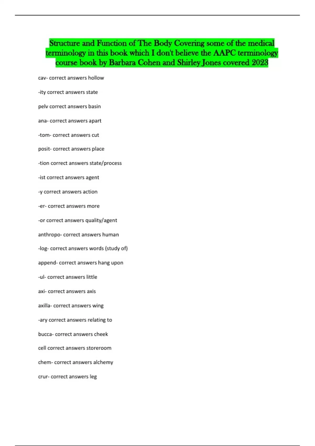 structure and function of the body covering some of the medical terminology in this book which i dont believe the aapc terminology course book by barbara cohen and shirley jones covered 2023