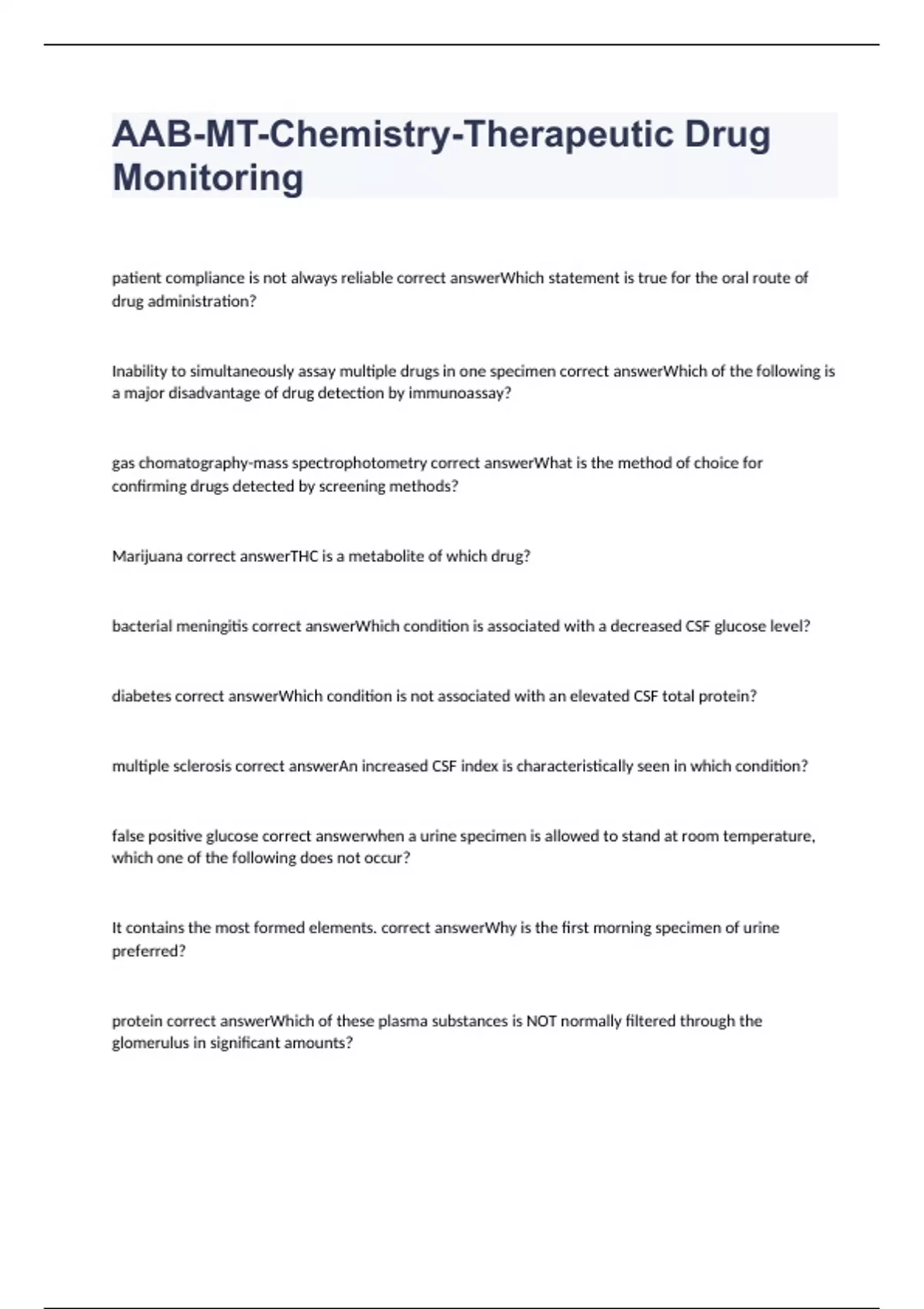 AAB-MT-Chemistry-Therapeutic Drug Monitoring exam 2023 with 100% correct answers