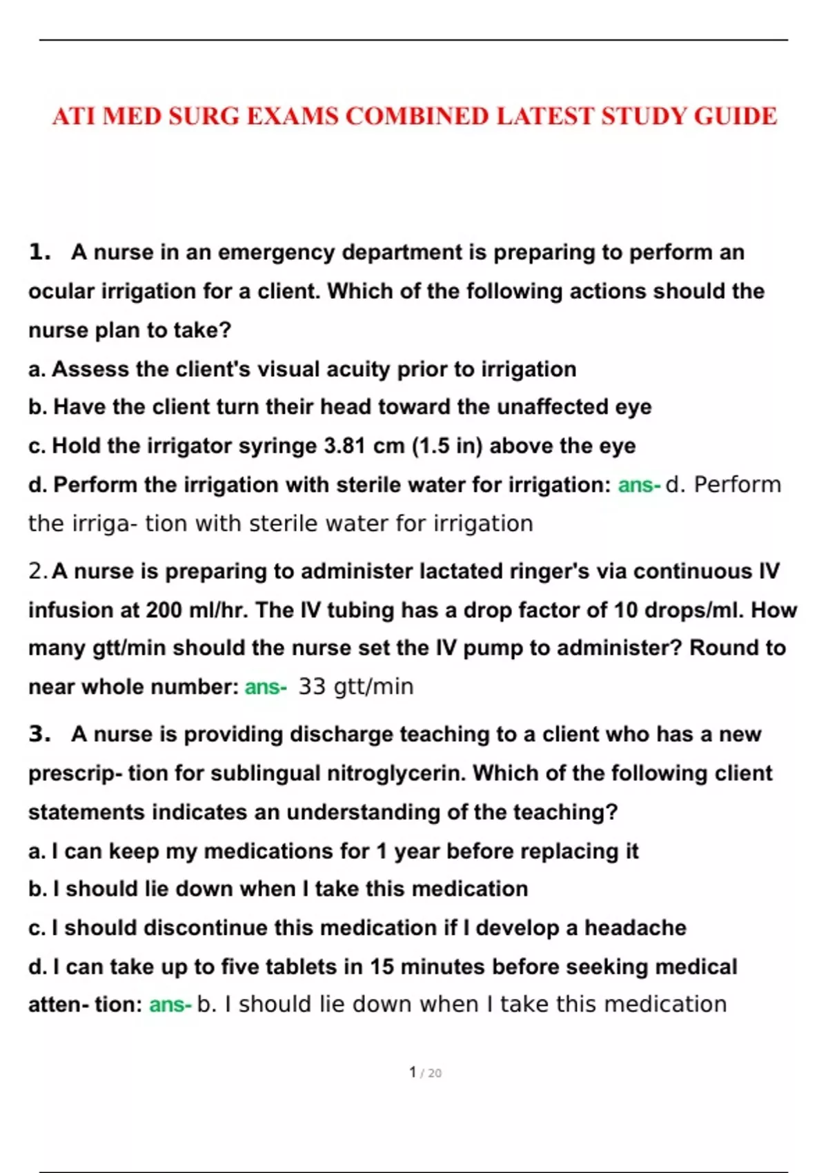 ATI MED SURG EXAMS COMBINED LATEST STUDY GUIDE 2022/2023