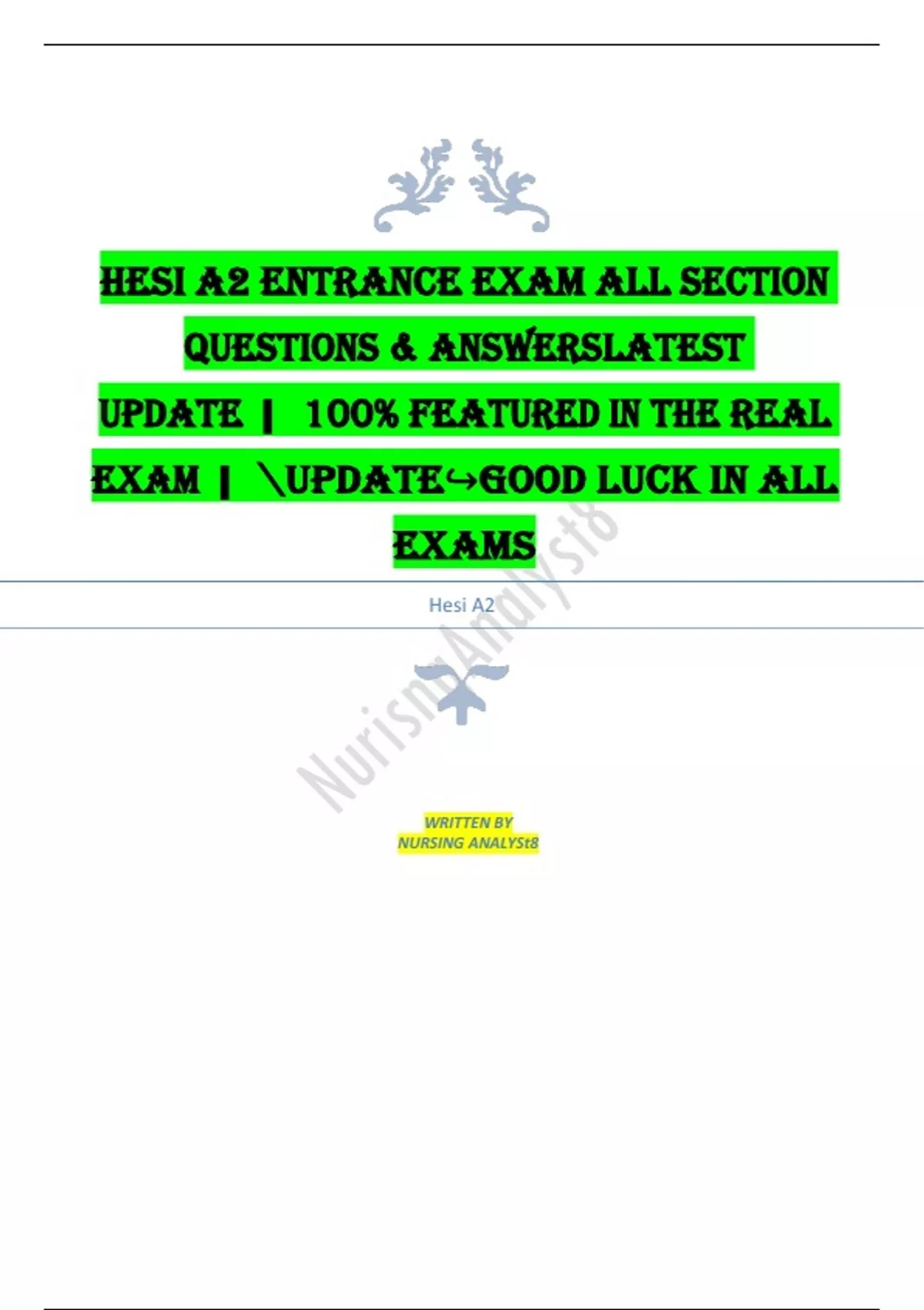 hesi a2 entrance exam all section questions amp answers latest update| 100 featured in the real exam| update↪good luck in all exams