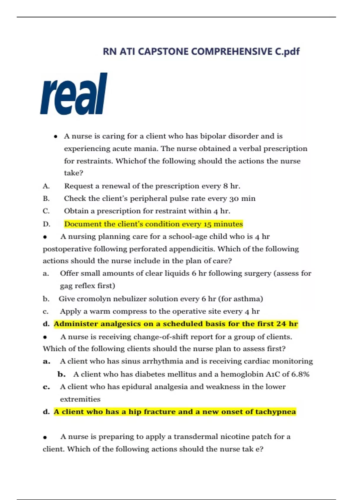 - RN ATI CAPSTONE COMPREHENSIVE C.